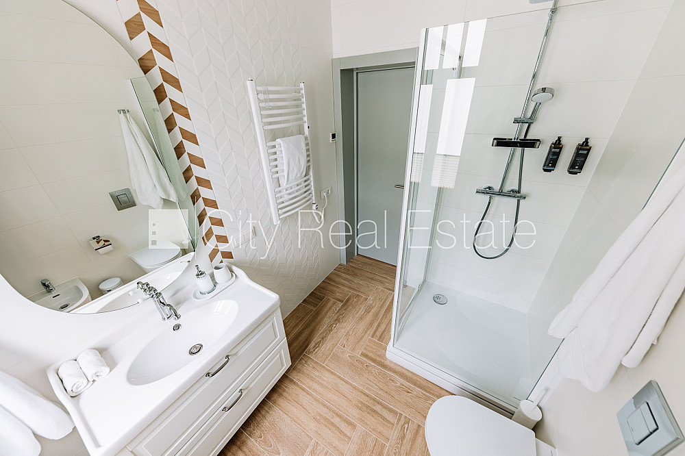 Fasādes māja, dzīvokļu skaits ēkā 5 gab., apsaimniekošanas maksa mēnesī 110 EUR, zaļā teritorija, labiekārtots apzaļumots pagalms, slēgts pagalms, vieta automašīnai, ieeja no ielas, pagalmā bērnu spēļu laukums, apzaļumota teritorija ar jaunu kokaugu stādījumiem, istabas izolētas 3 gab., studio tipa, virtuve apvienota ar viesistabu, radiatori ar termoregulatoriem, apkures skaitītāji, individuāla apkures sistēmas uzskaite, gaisa kondicionieris ar siltuma funkciju, apsildāma grīda vannas istabā, parketa grīda, flīžu grīdas segums, divi sanitārie mezgli, dušas kabīne, bidē, iebūvēta virtuves iekārta, iebūvēti sienas skapji, televizors, ledusskapis, trauku mazgājamā mašīna, indukcijas plīts, cepeškrāsns, veļas mašīna, tosters, internets, kāpņu telpā koda atslēga, izīrē ar visu bildēs redzamo aprīkojumu, atbrīvots, stratēģiski izdevīga vieta, līdz jūrai 100 m, izvēloties šo īpašumu, komisijas maksa par starpniecības pakalpojumiem ir vienāda ar vienu pusi (50%) no šī īpašuma viena mēneša īres maksas, cena vasaras sezonā - 5000.00 EUR, CITY REAL ESTATE ID - 517154