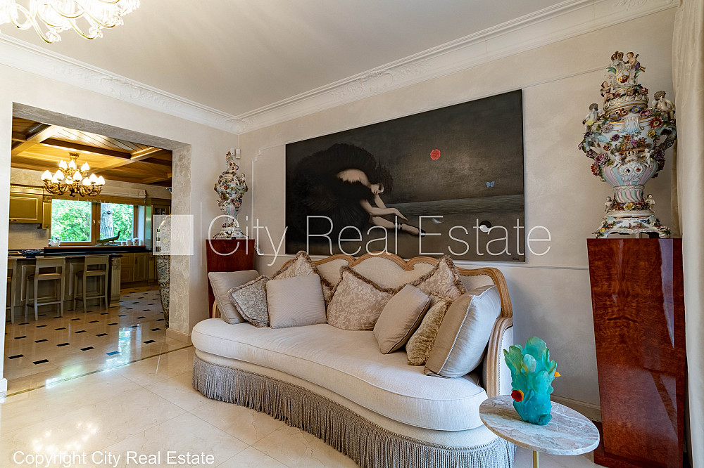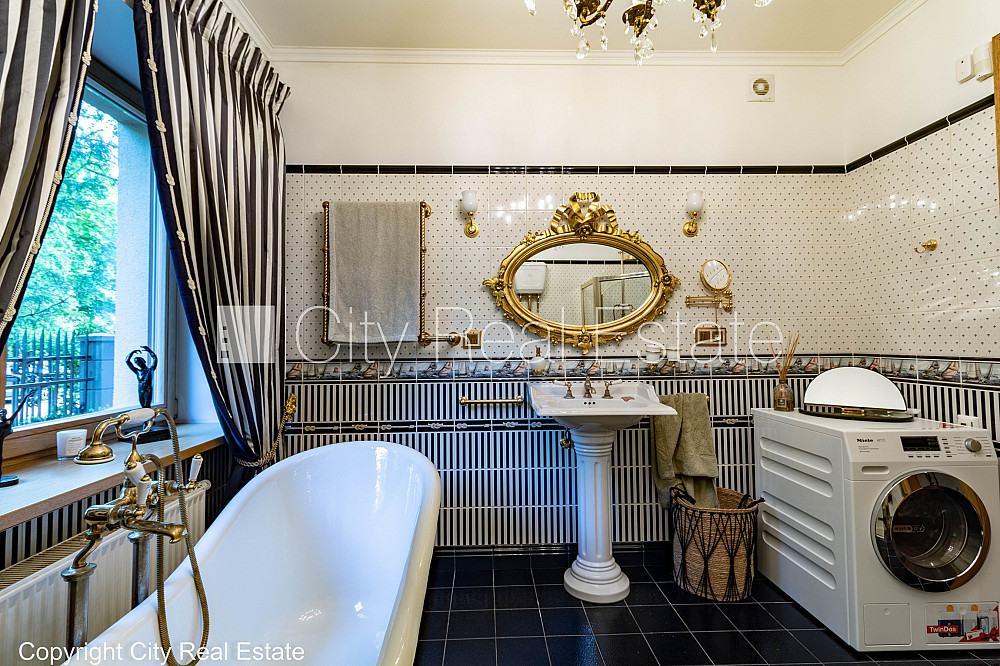 Jaunceltne, labiekārtota apzaļumota teritorija, slēgta teritorija, teritorijas iebrauktuves vārti aprīkoti ar automatizētu atvēršanās un aizvēršanās sistēmu, vieta automašīnai, ieeja no ielas, apzaļumota teritorija ar jaunu kokaugu stādījumiem, luksuss apartamenti 150 m2, terase, logi vērsti mājas abās pusēs, istabas izolētas 26,2 gab., viesistaba 48,1 m2, virtuve 34,3 m2, garderobe 6,2 m2, halle, kamīns, gāzes apkure, apkures skaitītāji, individuāla apkures sistēmas uzskaite, pilnā apdare, lielie skatlogi, parketa grīda, marmora grīdas segums, divi sanitārie mezgli, vanna, dušas kabīne, antikvāras mēbeles, restaurētas mēbeles, iebūvēta virtuves iekārta, iebūvēti sienas skapji, televizors, ledusskapis, trauku mazgājamā mašīna, elektriskā plīts, cepeškrāsns, tvaika nosūcējs, veļas mašīna, internets, diennakts videonovērošana, izīrē ar visu bildēs redzamo aprīkojumu, atbrīvots, līdz dzelzceļa stacijai, līdz Baltijas jūrai 0,2 km, cena vasaras sezonā - 5000.00 EUR, CITY REAL ESTATE ID - 517556