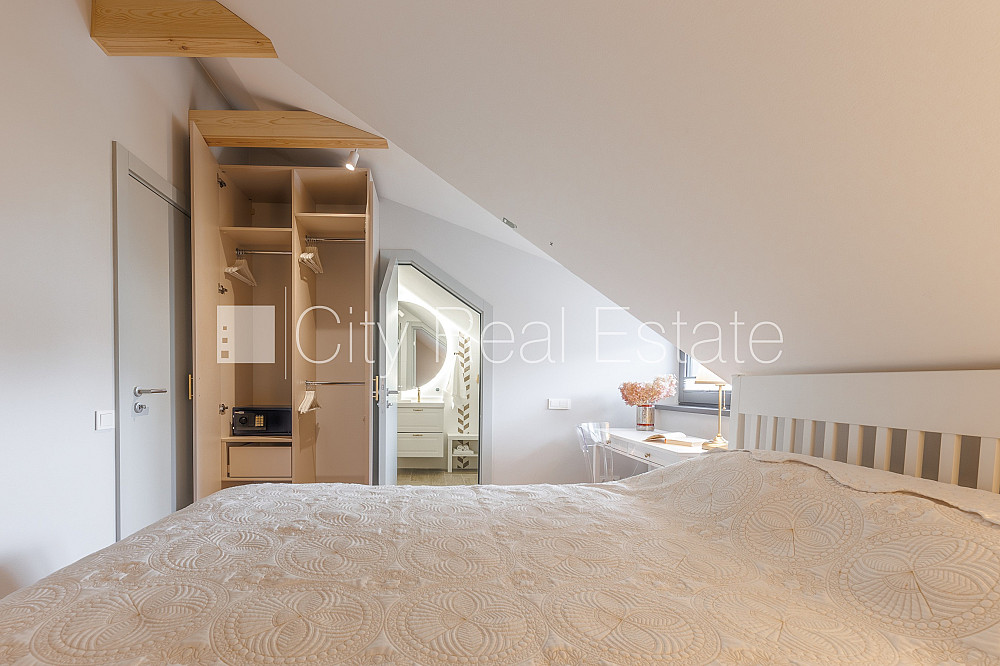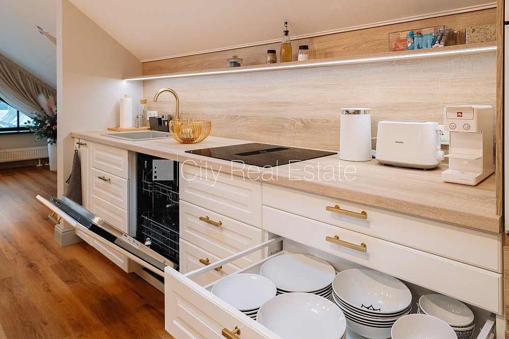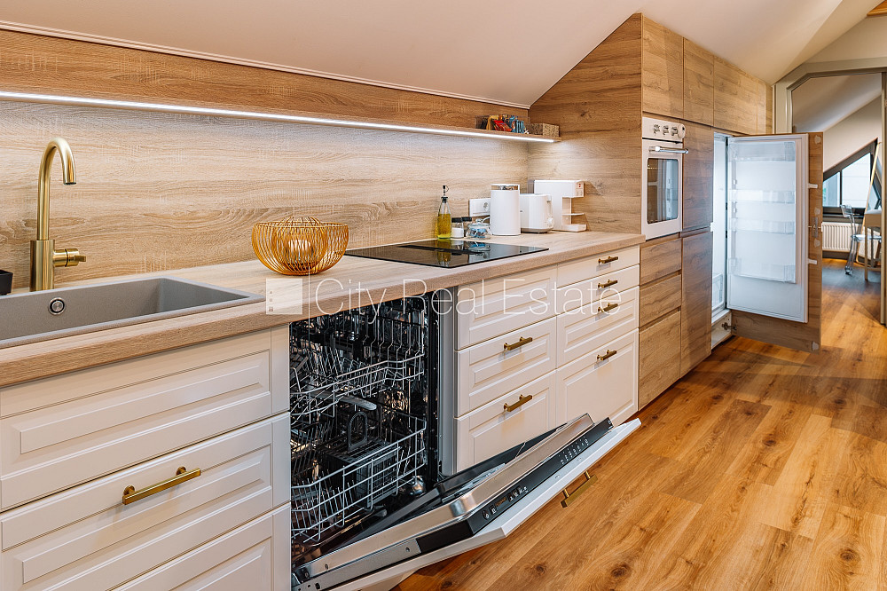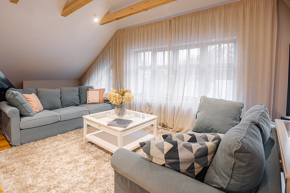 Jaunceltne, labiekārtots apzaļumots pagalms, slēgts pagalms, apzaļumota teritorija ar jaunu kokaugu stādījumiem, logi vērsti mājas abās pusēs, istabas izolētas 3 gab., viesistaba, virtuve, radiatori ar termoregulatoriem, centrālā apkure, plastikāta stikla pakešu logi, lamināta parketa grīda, flīžu grīdas segums, divi sanitārie mezgli, vanna, dušas kabīne, iebūvēta virtuves iekārta, ledusskapis, trauku mazgājamā mašīna, elektriskā plīts, cepeškrāsns, veļas mašīna, veļas žāvētājs, kāpņu telpā koda atslēga, izīrē ar visu bildēs redzamo aprīkojumu, stratēģiski izdevīga vieta, līdz jūrai 100 m, cena vasaras sezonā - 5000.00 EUR, CITY REAL ESTATE ID - 517104