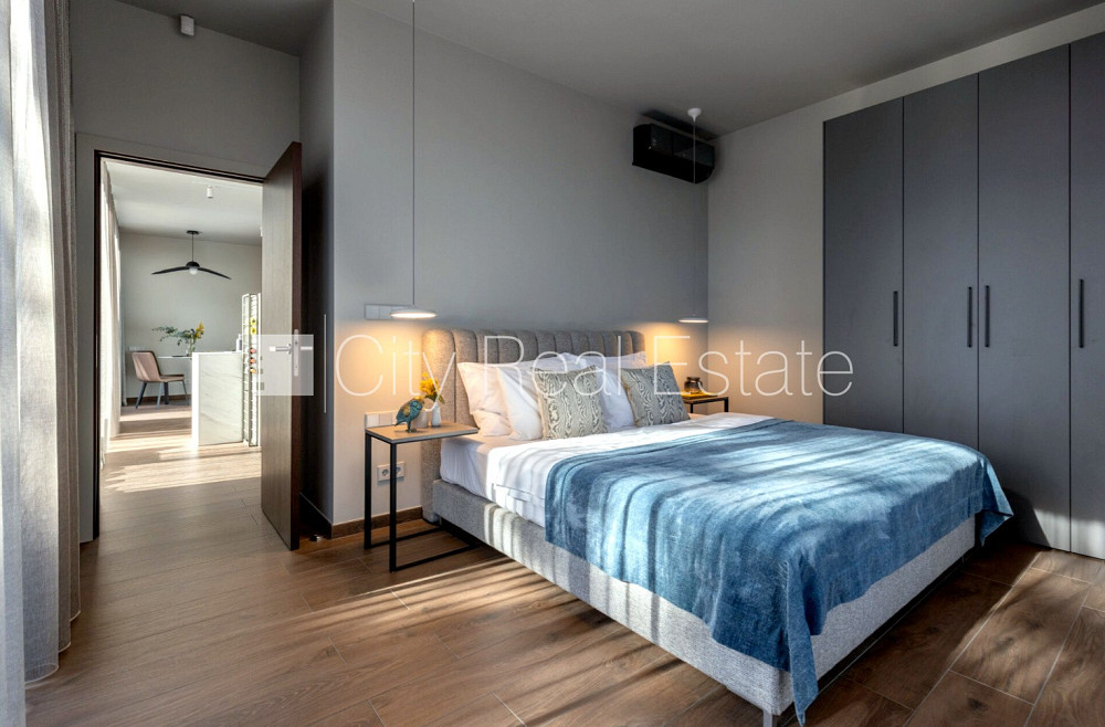 Jaunceltne, fasādes māja, labiekārtota apzaļumota teritorija, pazemes autostāvvieta, ieeja no ielas, ir lifts, terase, gaisa ventilācijas sistēma, istabas izolētas 1 gab., studio tipa, virtuve apvienota ar viesistabu, automatizēta apkures sistēma, apkures skaitītāji, individuāla apkures sistēmas uzskaite, pilnā apdare, apsildāmas grīdas, lielie skatlogi, alumīnija stikla pakešu logi, parketa grīda, flīžu grīdas segums, sanitārais mezgls apvienots, dušas kabīne, iebūvēta virtuves iekārta, iebūvēti sienas skapji, stūra dīvāns, divguļamā gulta, gaisa kondicionieris, televizors, ledusskapis, trauku mazgājamā mašīna, elektriskā plīts, cepeškrāsns, veļas mašīna, optiskais internets, signalizācija, iespējama gultasveļas maiņa, kāpņu telpā koda atslēga, izīrē ar visu bildēs redzamo aprīkojumu, atbrīvots, projektā vēl pieejami dzīvokļi, stratēģiski izdevīga vieta, līdz jūrai 250 m, cena vasaras sezonā - 5250.00 EUR, CITY REAL ESTATE ID - 514950