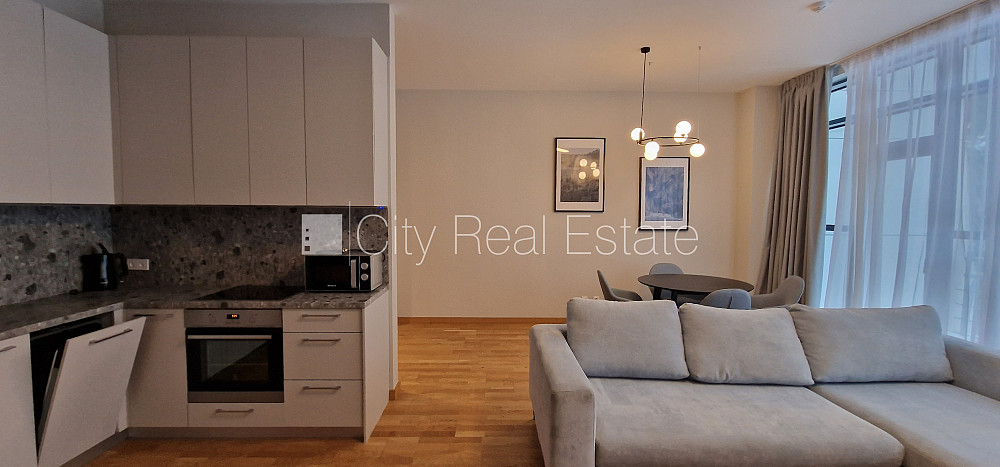 Jaunceltne, viena kvadrātmetra apsaimniekošanas maksa mēnesī 1,36 EUR, zaļā teritorija, slēgts pagalms, iespēja nomāt autostāvvietu, pazemes autostāvvieta, ieeja no ielas, apzaļumota teritorija ar jaunu kokaugu stādījumiem, luksuss apartamenti 89,5 m2, ir lifts, divas terases 13,4 m2, logi vērsti mājas abās pusēs, plašs skats no loga, gaisa ventilācijas sistēma, istabas izolētas, studio tipa, virtuve apvienota ar viesistabu, garderobe, griestu augstums 2,85 m, radiatori ar termoregulatoriem, uzstādīti karstā ūdens patēriņa skaitītāji, apkures skaitītāji, individuāla apkures sistēmas uzskaite, apsildāma grīda vannas istabā, lielie skatlogi, metāla durvis, parketa grīda, flīžu grīdas segums, divi sanitārie mezgli, vanna, dušas kabīne, iebūvēta virtuves iekārta, iebūvēti sienas skapji, stūra dīvāns, divguļamā gulta, virtuves galds, krēsli, gaisa kondicionieris, ledusskapis, trauku mazgājamā mašīna, elektriskā plīts, cepeškrāsns, veļas mašīna, internets, diennakts videonovērošana, video domofons, diennakts apsardze, trenažieru sporta zāle, kāpņu telpā koda atslēga, izīrē ar visu bildēs redzamo aprīkojumu, atbrīvots, nodots ekspluatācijā 2019 gadā, stratēģiski izdevīga vieta, CITY REAL ESTATE ID - 515847