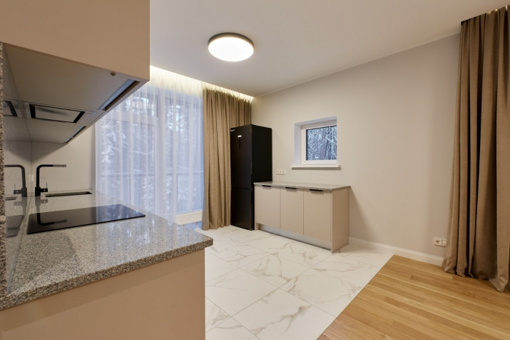 Ekskluzīvs dzīvoklis kluba tipa dzīvojamā kompleksā Jūrmalā, jaunā, kvalitatīvi būvētā ēkā ar augstu energoefektivitāti. Kompleksā ir tikai 13 dzīvokļi, kas izvietoti divās ēkās. Šis dzīvoklis ir vienīgais šajā ēkas stāvā - nav jādala kāpņu telpa ar citiem kaimiņiem, un tas dod īpašu privātuma sajūtu. Dzīvojamā platība ir 80 m2 plus 5m2 balkons. Dzīvoklim ir pilna augstākās klases apdare, un papildus ieguldījumi nebūs nepieciešami: ozolkoka parkets, Villeroy & Boch un Grohe santehnika, itāļu porcelāna flīzes un iebūvētās mēbeles. Individuāli apkures un ūdens skaitītāji. Kompleksu pārvalda projekta īpašnieks un apsaimnieko tieši šim īpašumam izveidota apsaimniekošanas kompānija. Autostāvvieta ir iekļauta dzīvokļa cenā. Iežogota teritorija. Blakus teritorijai ir priežu mežs. Turpat netālu Lielupes tenisa centrs. Līdz pludmalei 10- minūtes kājām. Nāciet un baudiet mierpilnu un harmonisku dzīvi Jūrmalā bez tūristu burzmas.