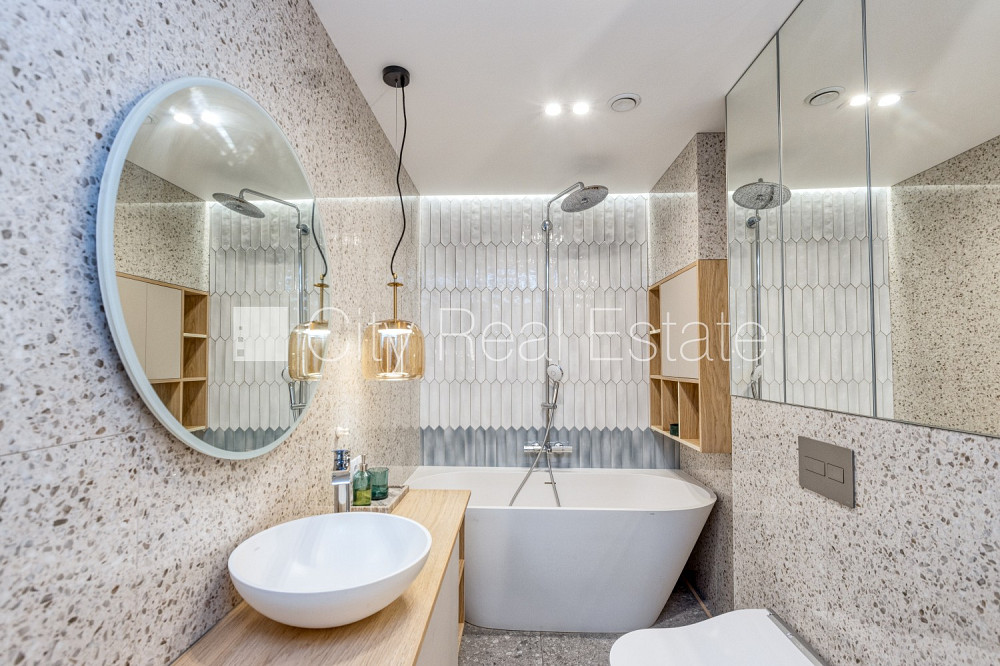 Jaunceltne, fasādes māja, zaļā teritorija, slēgta teritorija, pazemes autostāvvieta, ieeja no ielas, pagalmā bērnu spēļu laukums, apzaļumota teritorija ar jaunu kokaugu stādījumiem, terase, logi vērsti mājas abās pusēs, guļamistabu skaits 3 gab., istabas izolētas 3 gab., studio tipa, virtuve apvienota ar viesistabu, radiatori ar termoregulatoriem, uzstādīti aukstā ūdens patēriņa skaitītāji, uzstādīti karstā ūdens patēriņa skaitītāji, apkures skaitītāji, individuāla apkures sistēmas uzskaite, pilnā apdare, apsildāma grīda vannas istabā, lielie skatlogi, lamināta parketa grīda, parketa grīda, divi sanitārie mezgli, vanna, dušas kabīne, iebūvēta virtuves iekārta, iebūvēti sienas skapji, gaisa kondicionieris, televizors, ledusskapis, trauku mazgājamā mašīna, indukcijas plīts, cepeškrāsns, tvaika nosūcējs, veļas mašīna, diennakts videonovērošana, diennakts apsardze, atbrīvots, stratēģiski izdevīga vieta, līdz jūrai 150 m, CITY REAL ESTATE ID - 517470