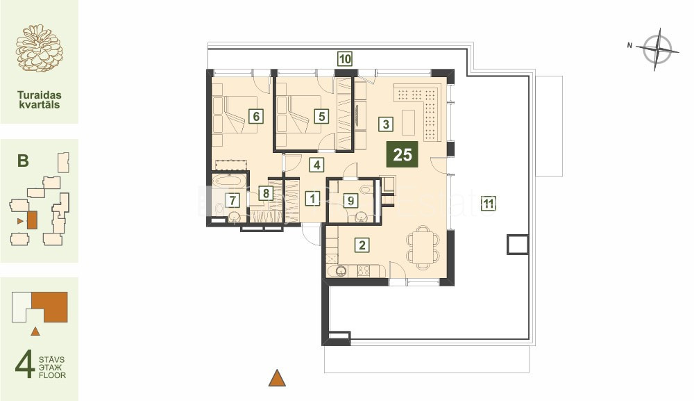 Projekts - Turaidas Kvartāls, zeme īpašumā, jaunceltne, labiekārtots apzaļumots pagalms, slēgts pagalms, iespēja nomāt autostāvvietu, luksuss apartamenti , ir lifts, terase 72 m2, studio tipa, virtuve apvienota ar viesistabu, garderobe, halle, pilnā apdare, jauna santehnika, divi sanitārie mezgli, vanna, dušas kabīne, iebūvēta virtuves iekārta, divguļamā gulta, viesistabas galds, krēsli, atpūtas krēsli, skapis, ledusskapis, elektriskā plīts, cepeškrāsns, mikroviļņu krāsns, veļas mašīna, diennakts videonovērošana, slēgta kāpņu telpa, stratēģiski izdevīga vieta, CITY REAL ESTATE ID - 516546