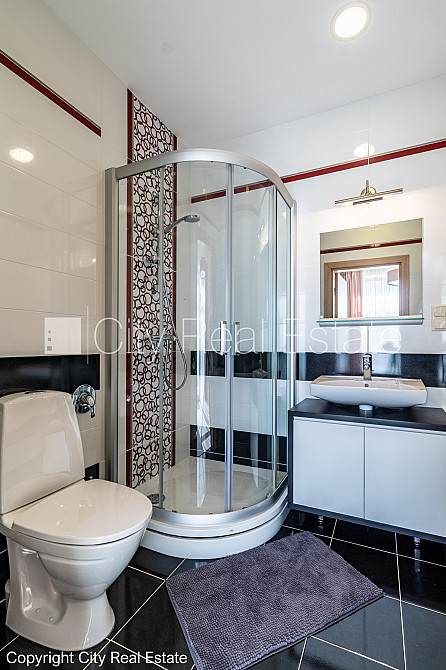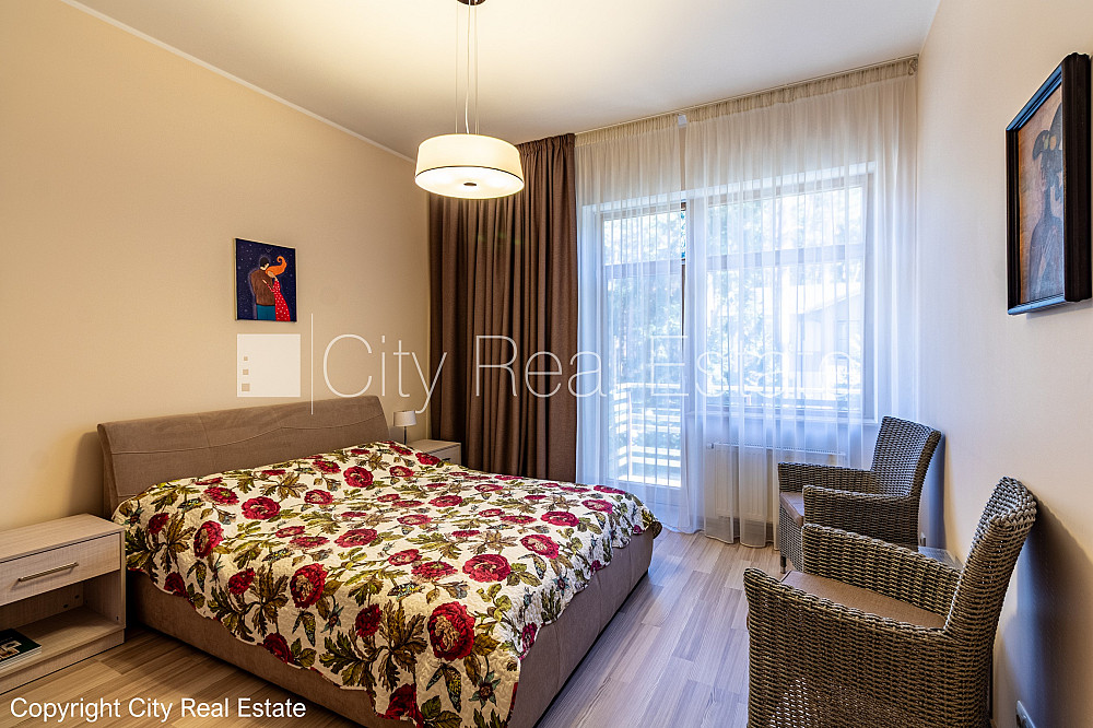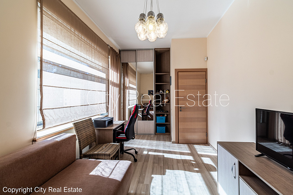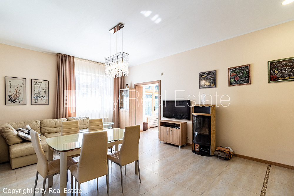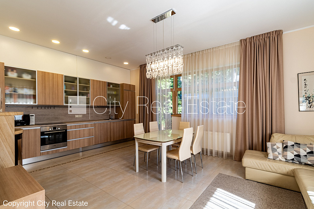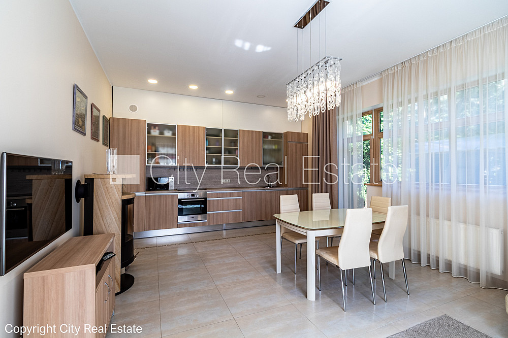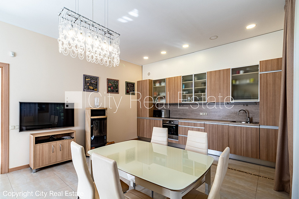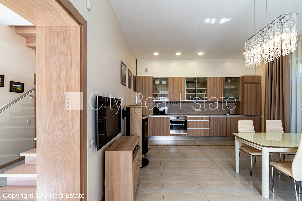 Zeme īpašumā, jaunceltne, zaļā teritorija, slēgts pagalms, teritorijas iebrauktuves vārti aprīkoti ar automatizētu atvēršanās un aizvēršanās sistēmu, vieta vairākām automašīnām, ieeja no pagalma, apzaļumota teritorija ar jaunu kokaugu stādījumiem, divi balkoni, terase, logi vērsti mājas abās pusēs, istabas izolētas 3 gab., studio tipa, virtuve apvienota ar viesistabu, palīgtelpa, radiatori ar termoregulatoriem, gāzes apkure, pilnā apdare, trīs līmeņos, apsildāma grīda virtuvē, apsildāma grīda vannas istabā, lielie skatlogi, koka stikla pakešu logi, lamināta parketa grīda, flīžu grīdas segums, trīs sanitārie mezgli, vanna, dušas kabīne, iebūvēta virtuves iekārta, iebūvēti sienas skapji, gaisa kondicionieris, ledusskapis, trauku mazgājamā mašīna, elektriskā plīts, cepeškrāsns, veļas mašīna, internets, signalizācija, pārdod ar visu bildēs redzamo aprīkojumu, atbrīvo pēc nepieciešamības, reģistrēts zemesgrāmatā, līdz pilsētas centram 1,2 km, līdz Rīgai 15 km, līdz lidostai 16 km, līdz parkam 1 km, līdz dzelzceļa stacijai 950 m, līdz sporta centram 3 km, līdz veikalam 0,75 km, līdz lielveikalam 3 km, līdz Vecrīgai 20 km, līdz Baltijas jūrai 1,5 km, CITY REAL ESTATE ID - 517307