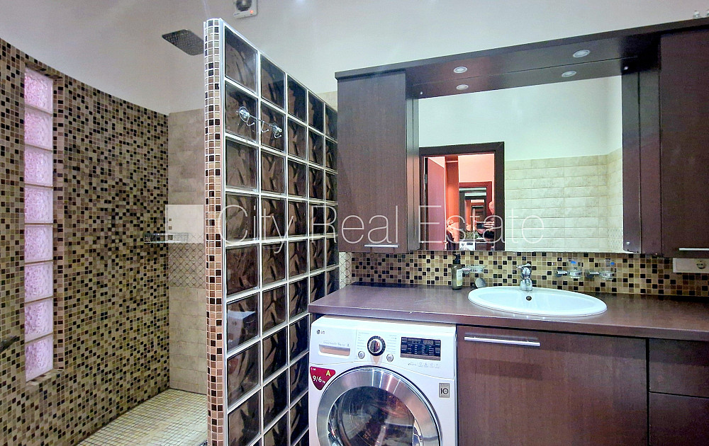 Privātmāja, jaunceltne, labiekārtots apzaļumots pagalms, iežogota teritorija, garāža vienai automašīnai, pirmais stāvs ar dārzu, divi balkoni, terase, guļamistabu skaits 5 gab., viesistaba, virtuve, garderobe, kabinets, gāzes apkure, automatizēta apkures sistēma, pilnā apdare, koka stikla pakešu logi, parketa grīda, trīs sanitārie mezgli, vanna, dušas kabīne, iebūvēta virtuves iekārta, iebūvēti sienas skapji, televizors, ledusskapis, trauku mazgājamā mašīna, elektriskā plīts, cepeškrāsns, veļas mašīna, satelīta televīzija, internets, izīrē ar visu bildēs redzamo aprīkojumu, dārza lapene, stratēģiski izdevīga vieta, cena vasaras sezonā - 5000.00 EUR, CITY REAL ESTATE ID - 424508