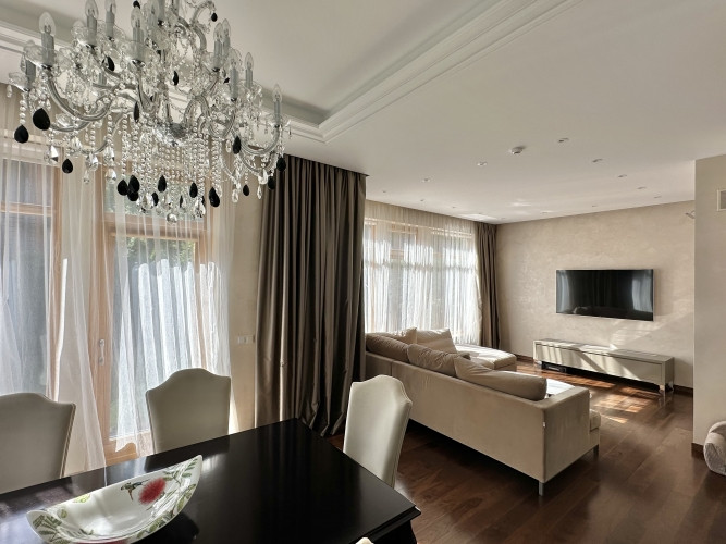 Tiek izīrēta eleganta māja Bulduros, tikai pāris soļu attālumā no viesnīcas Lielupe, kā arī pludmales 300m. Māja ir pilnība mēbelēta un aprīkota ar visu nepieciešamo sadzīves tehniku. Augstākās klases materiāli, dizaina lampas, dizaina mēbeles. Māja sastāv no virtuves ar izeju uz terasi, dzīvojamās istabas, četras guļamistabas, saimnieku guļamistaba ar savu garderobi un vannas istabu, sauna, kā arī papildus vannas istaba un saimniecības telpa. Uz dienvidu pusi vērstie plašie logi piepildīs māju ar sauli. Ir iekopta piemājas teritorija un dārzs. Īres cena vasaras mēnešos 8000 EUR/mēnesī.