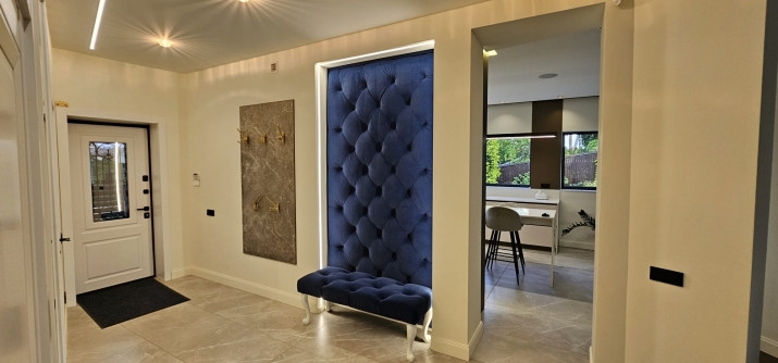 Eleganta divstāvu privātmāja mierpilnā, zaļā apkārtnē. Pārdošanā premium klases privātmāja, kas radīta cilvēkiem ar augstām prasībām pret komfortu, kvalitāti un dzīves vidi. Mājas kopējā platība ir 401,4 m, 1 091 m labiekārtots zemesgabals klusā, zaļā apkaimē, kur ērta piekļuve pilsētas infrastruktūrai. Ēka celta no dabīgiem materiāliem, nodrošinot izcilu siltuma un skaņas izolāciju, kā arī ilgmūžību. Māja aprīkota ar mūsdienīgām inženiertehniskām sistēmām, kas garantē augstu energoefektivitāti un komfortu visos gadalaikos. Grīdas apsilde ar 11 neatkarīgi regulējamām zonām, Buderus gāzes katls ar attālinātu vadību, kā arī efektīva ventilācijas sistēma ar siltuma rekuperāciju un centralizēta gaisa kondicionēšana rada ideālu mikroklimatu ikdienas dzīvei. Panorāmas trīskāršā stiklojuma logi ar drošības plēvi nodrošina gan mieru, gan drošību, savukārt automātiskās žalūzijas ar pulti piešķir papildu komfortu un eleganci. Jumts izbūvēts ar dubulto hidroizolāciju un īpašu šindeļu segumu. Interjers veidots ar izsmalcinātu gaumi un augstākās klases materiāliem. Virtuve ir pilnībā aprīkota ar NEFF tehniku, bet darba virsmas izgatavotas no dabīgā White Pearl akmens. Vannasistabās izmantota augstvērtīga santehnika no Villeroy & Boch, Flaminia un citiem atzītiem zīmoliem. Plašajā viesistabā ierīkota augstākās klases Atmos skaņas sistēma ar 12 skaļruņiem un iespaidīgu 85 collu televizoru, radot ideālu vidi gan atpūtai, gan izklaidei. Īpašuma teritorija ir rūpīgi labiekārtota to rotā sešus metrus augstas tūjas, rododendri un rožu dārzs. Granīta bruģis piešķir izsmalcinātību iebraucamajam ceļam un celiņiem, savukārt plašā terase ar āra kamīnu ir ideāla vieta mierpilniem vakariem vai viesu uzņemšanai. Papildus izbūvēta atsevišķa skandināvu stilā veidota saimniecības ēka. Atrašanās vieta ir īpaši pievilcīga klusa un zaļa vide ar ātru piekļuvi šosejai, netālu upe un jūras pludmales. Šis īpašums ir lieliska izvēle tiem, kuri vēlas baudīt dabas tuvumu, nezaudējot pilsētas ērtības, un meklē mājvietu, kur kvalitāte jūtama katrā detaļā. Sazinies ar mani un vienojies par apskates laiku!