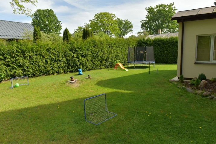 Piedāvājam iegādei ērtu 2 stāvu dzīvojamo māju Jūrmalā. Mājas kopējā platība 134,5 kv. m, zemes platība pie mājas 766 kv. m. Mājas teritorijā atrodas viesu namiņš 19,7 kv.m platībā (ar dzīvojamo istabu, virtuvi, vannas istabu ar dušu un lapeni). Ir divas grila zonas. Šī 2 stāvu ģimenes privātmāja ir ar praktisku un ērtu plānojumu. Mājas plānojums piedāvā: mājas 1 stāvā: ieejas halle ar skapjiem virsdrēbēm, viesistaba ar virtuves zonu ar iebūvētajām mēbelēm, tehniku un ar ēdamzonu, tehniskā un katlu telpa, trīs izolētas istabas, viena caurstaigājama istaba, vannas istaba ar vannu; mājas 2.stāvā (ar atsevišķu ieeju no ielas): viesistaba ar virtuves zonu, guļamistaba, vannas istaba ar dušu. Visas pilsētas komunikācijas, gāzes apkure (savs gāzes katls). Teritorija pie mājas ir labiekārtota un iežogota, tūjas ieskauj visu īpašuma perimetru. Teritorijā ir autostāvvieta divām automašīnām. Māja būs lieliski piemērota ģimenei ar bērniem, jo tuvu bērnudārzs "Ābelīte". Jūra un Dzintaru parks atrodas 15 minūšu gājiena attālumā, upe - 3 minūšu gājiena attālumā. Upes krastā ir labiekārtota pludmale ar bērnu rotaļu laukumu un volejbola laukumu. Praktisks un komfortabls īpašums ērtai dzīvošanai Jūrmalā.