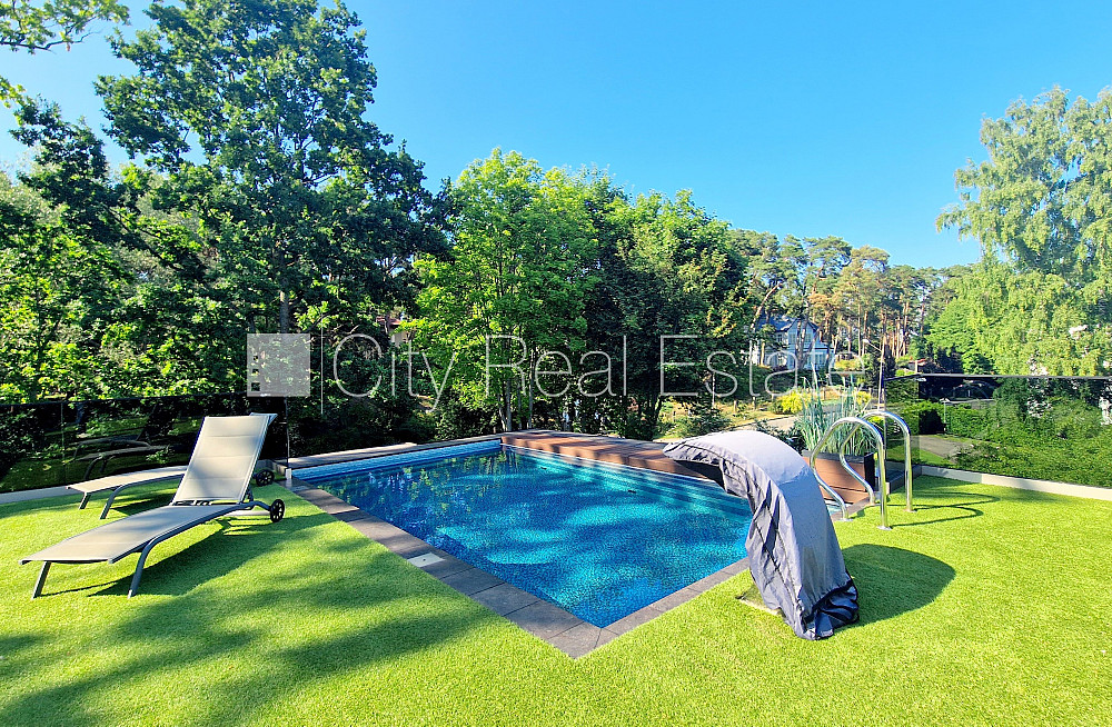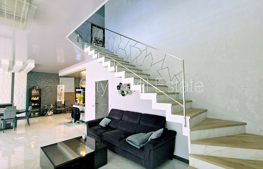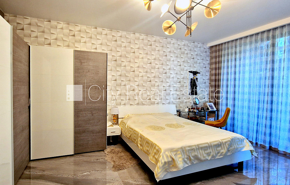 Zeme īpašumā, privātmāja, jaunceltne, labiekārtota apzaļumota teritorija, iežogota teritorija ar metāla sētu, teritorijas iebrauktuves vārti aprīkoti ar automatizētu atvēršanās un aizvēršanās sistēmu, garāža vienai automašīnai, luksuss apartamenti , pirmais stāvs ar dārzu, ir lifts, trīs balkoni, trīs lodžijas, divas terases, jumta terase, āra peldbaseins, baseins, sauna, turku pirts, gaisa ventilācijas sistēma, gaisa kondicionēšanas sistēma, guļamistabu skaits 5 gab., trīsstāvīgs, garderobe, palīgtelpa, vairākas halles, veļas mazgātava, augstie griesti, kamīns, gāzes apkure, automatizēta apkures sistēma, saules siltuma kolektors ar lielu autonomo uzkrājēju, pilnā apdare, apsildāmas grīdas istabās, lielie skatlogi, parketa grīda, marmora grīdas segums, vannas istabu skaits 6 gab., džakūzī dušas kabīne, džakūzī vanna, iebūvēta virtuves iekārta, iebūvēti sienas skapji, gaisa kondicionieris, ledusskapis, trauku mazgājamā mašīna, elektriskā plīts, cepeškrāsns, veļas mašīna, veļas žāvētājs, optiskais internets, signalizācija, diennakts videonovērošana, nodots ekspluatācijā, stratēģiski izdevīga vieta, līdz jūrai 200 m, CITY REAL ESTATE ID - 515391