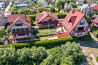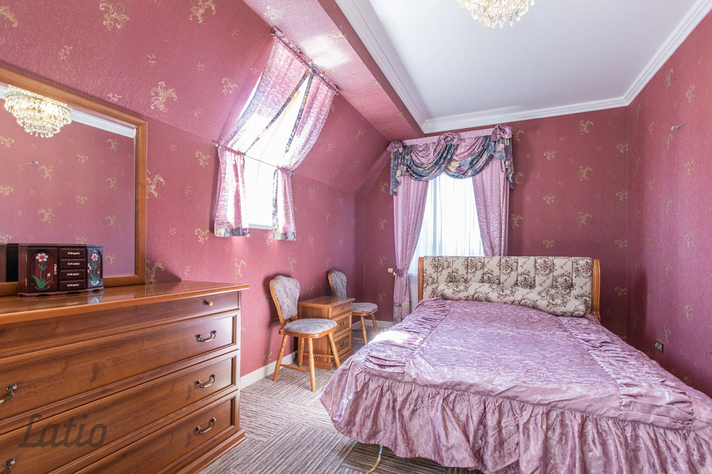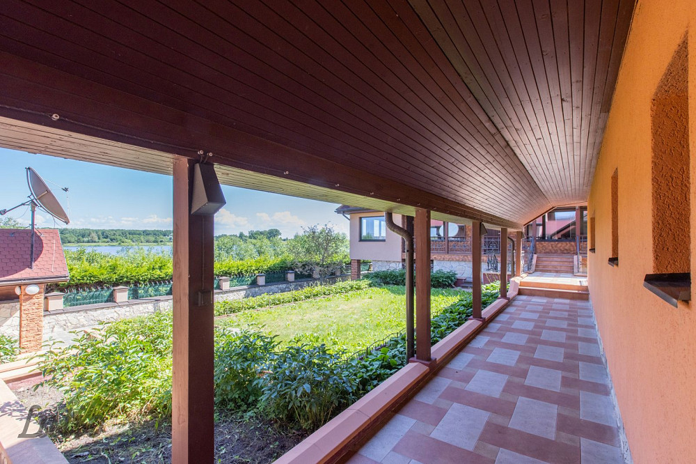 Trīsstāvu ēka ar plašu un pārdomātu plānojumu. Tajā ir četras guļamistabas, divas viesistabas, virtuve ar iebūvētām mēbelēm un sadzīves tehniku, vannas istaba ar tualeti, atsevišķa tualete un palīgtelpas. Ēkā ierīkota pirts, speciāli aprīkota laivas garāža, divi balkoni un uz logiem uzstādītas metāla žalūzijas. Māja tiek pārdota daļēji mēbelēta.