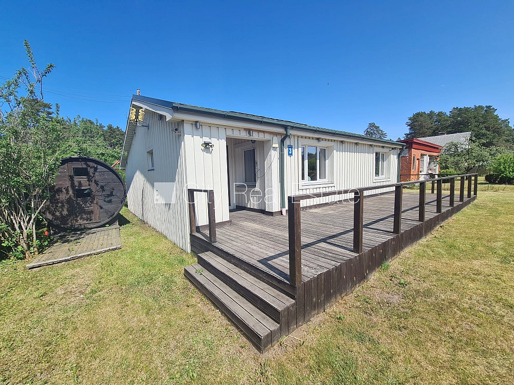 Zeme īpašumā, vasarnīca, jaunceltne, fasāde ar koka apdari, labiekārtota apzaļumota teritorija, labiekārtots apzaļumots pagalms, slēgts pagalms, iežogota teritorija, iežogota teritorija ar koka sētu, terase, logi vērsti mājas abās pusēs, viesistaba, studio tipa, virtuve apvienota ar viesistabu, augstie griesti, kamīns, elektriskā apkure, boilers karstajam ūdenim, pilnā apdare, plastikāta stikla pakešu logi, izlīmētas tapetes, krāsotas sienas, parketa grīda, flīžu grīdas segums, sanitārais mezgls apvienots, divi sanitārie mezgli, dušas kabīne, tualete 2 gab., iebūvēta virtuves iekārta, iebūvēti sienas skapji, dīvāns, gulta , virtuves krēsli, ledusskapis, trauku mazgājamā mašīna, elektriskā plīts, cepeškrāsns, tvaika nosūcējs, veļas mašīna, signalizācija, pārdod ar visu bildēs redzamo aprīkojumu, atbrīvo pēc nepieciešamības, zeme robežojas ar ielu, zeme robežojas ar grants seguma ceļu, līdz jūrai 800 m, ir elektrība, vietējā kanalizācija, spice, pirts, augļu koku dārzs, netālu no galvenās šosejas 1 km, nav apgrūtinājumu, reģistrēts zemesgrāmatā, par cenu iespējams vienoties, CITY REAL ESTATE ID - 426039