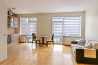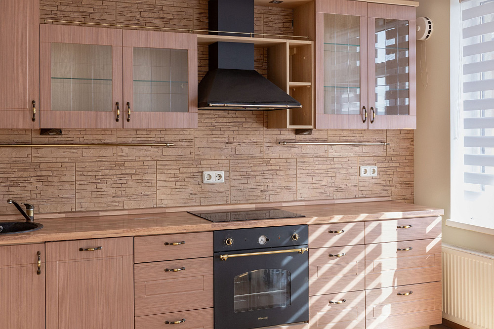Virtuve izgatavota pēc individuāla pasūtījuma, aprīkota ar sadzīves tehniku. Dzīvoklis daļēji mēbelēts.