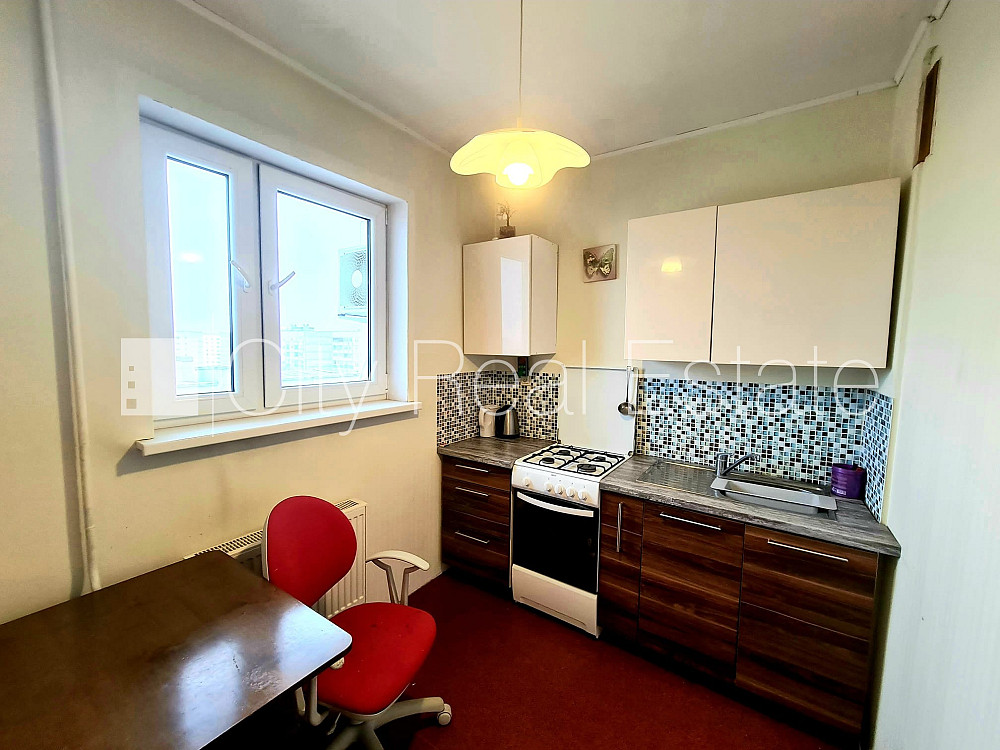 Labiekārtota apzaļumota teritorija, ir lifts, lodžija 6 m2, istaba izolēta, virtuve, halle, palīgtelpa, centrālā apkure, metāla durvis, sanitārais mezgls apvienots, iebūvēta virtuves iekārta, dīvāns, galds, grāmatu skapis, skapis, kāpņu telpā koda atslēga, CITY REAL ESTATE ID - 511675