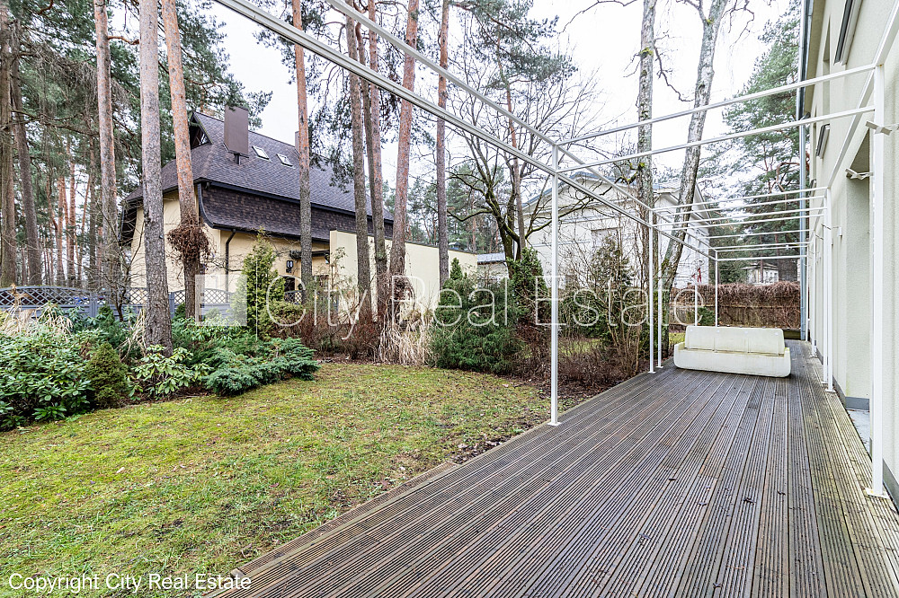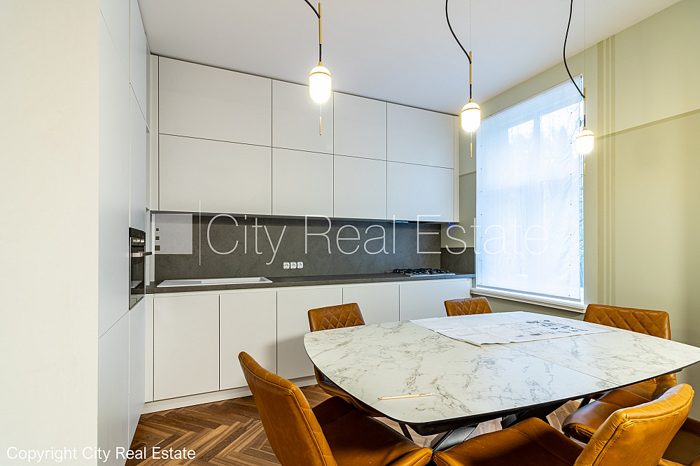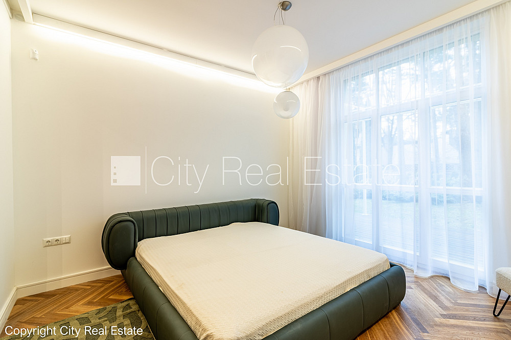 Privātmāja, dzīvokļu skaits ēkā 4 gab., labiekārtots apzaļumots pagalms, bruģēts piebraucamais ceļš, slēgts pagalms, teritorijas iebrauktuves vārti aprīkoti ar automatizētu atvēršanās un aizvēršanās sistēmu, vieta vairākām automašīnām, terase, gaisa ventilācijas sistēma, gaisa kondicionēšanas sistēma, istabas izolētas 2 gab., studio tipa, virtuve apvienota ar viesistabu, halle, palīgtelpa, gāzes apkure, apkures skaitītāji, individuāla apkures sistēmas uzskaite, pilnā apdare, apsildāmas grīdas, lielie skatlogi, koka stikla pakešu logi, parketa grīda, flīžu grīdas segums, divi sanitārie mezgli, dušas kabīne, stūra vanna, iebūvēta virtuves iekārta, ledusskapis, trauku mazgājamā mašīna, cepeškrāsns, gāzes plīts, tvaika nosūcējs, veļas mašīna, signalizācija, izīrē ar visu bildēs redzamo aprīkojumu, stratēģiski izdevīga vieta, CITY REAL ESTATE ID - 517074