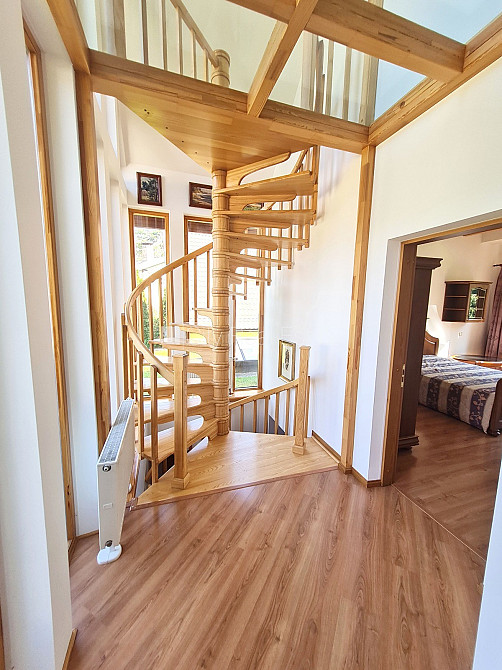 Privātmāja, iežogota teritorija ar metāla sētu, vieta vairākām automašīnām, apzaļumota teritorija ar jaunu kokaugu stādījumiem, cokolstāvs, puspagrabs, mansards, terase, divstāvīgs, istabas izolētas 3 gab., viesistaba, virtuve, slīpie griesti, divas ieejas, radiatori ar termoregulatoriem, gāzes apkure, apsildāma grīda vannas istabā, lielie skatlogi, koka stikla pakešu logi, koka dēļu grīdas segums, divi sanitārie mezgli, vanna, bidē, iebūvēta virtuves iekārta, iebūvēti sienas skapji, ledusskapis, trauku mazgājamā mašīna, indukcijas plīts, cepeškrāsns, tvaika nosūcējs, veļas mašīna, izīrē ar visu bildēs redzamo aprīkojumu, atbrīvots, līdz ezeram 200 m, stratēģiski izdevīga vieta, CITY REAL ESTATE ID - 516469