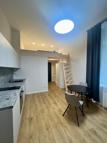 Ilgtermiņa īrei pieejams mūsdienīgs un līdz detaļām pārdomāts studio tipa dzīvoklis 510 EUR