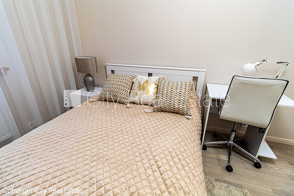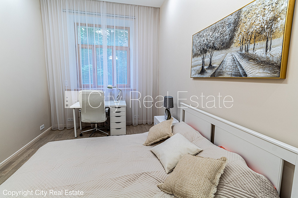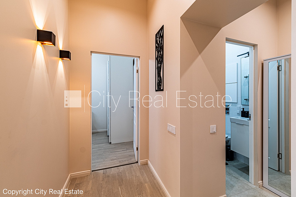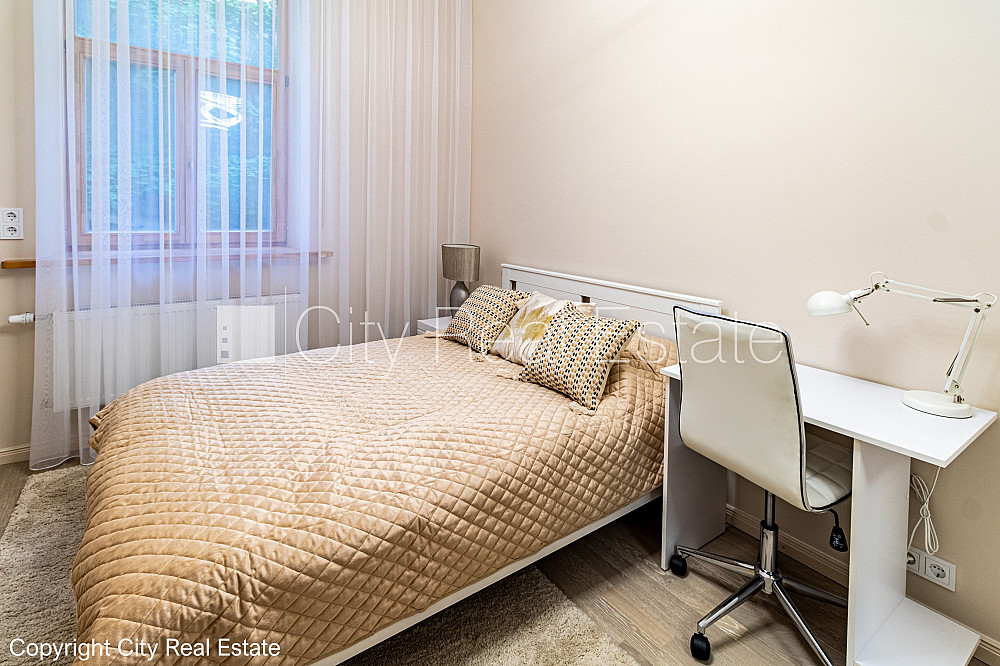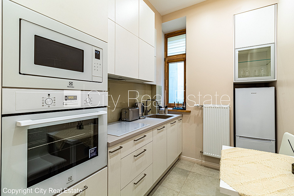 Pagalma māja, renovēta māja, labiekārtots apzaļumots pagalms, slēgts pagalms, ir lifts, kāpņu telpa pēc kapitālā remonta, logi vērsti uz pagalma pusi, istabas izolētas 2 gab., virtuve, halle, augstie griesti, gāzes apkure, koka stikla pakešu logi, jauna santehnika, lamināta parketa grīda, flīžu grīdas segums, sanitārais mezgls apvienots, vanna, iebūvēta virtuves iekārta, divguļamā gulta, virtuves galds, datorgalds, taburetes, skapis, spogulis, televizors, ledusskapis, elektriskā plīts, cepeškrāsns, internets, kabeļtelevīzija, diennakts videonovērošana, kāpņu telpā koda atslēga, izīrē ar visu bildēs redzamo aprīkojumu, trauki, uz vienu mēnesi, uz sešiem mēnešiem, uz 1 gadu, ar iespēju pagarināt līgumu, atbrīvots, projektā vēl pieejami dzīvokļi, stratēģiski izdevīga vieta, slēdzot īres līgumu, Jums būs jāmaksā par pirmo īres mēnesi , kā arī jāiemaksā drošības depozīts viena mēneša īres maksas apmērā, izvēloties šo īpašumu, komisijas maksa par starpniecības pakalpojumiem ir vienāda ar vienu pusi (50%) no šī īpašuma viena mēneša īres maksas, CITY REAL ESTATE ID - 425074