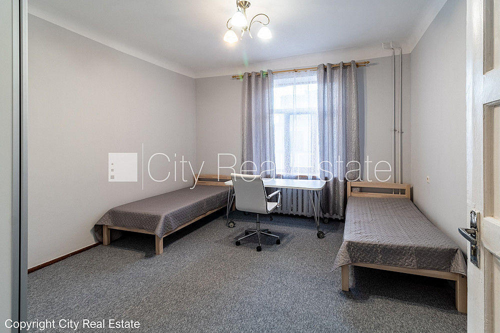 Pagalma māja, renovēta māja, guļamistabu skaits 2 gab., istabas izolētas 2 gab., viena istaba caurstaigājama, virtuve, augstie griesti, paklāja grīdas segums, lamināta parketa grīda, parketa grīda, flīžu grīdas segums, sanitārais mezgls atsevišķs, vanna, gulta , divguļamā gulta, viesistabas galds, krēsli, skapis, kumode, ledusskapis, cepeškrāsns, gāzes plīts, mikroviļņu krāsns, veļas mašīna, internets, kabeļtelevīzija, izīrē ar visu bildēs redzamo aprīkojumu, galda lampas, spilveni, segas, gultas veļa, trauki, uz vienu mēnesi, uz sešiem mēnešiem, uz 1 gadu, ar iespēju pagarināt līgumu, atbrīvots, projektā vēl pieejami dzīvokļi, stratēģiski izdevīga vieta, slēdzot īres līgumu, Jums būs jāmaksā par pirmo īres mēnesi , kā arī jāiemaksā drošības depozīts, izvēloties šo īpašumu, komisijas maksa par starpniecības pakalpojumiem ir vienāda ar vienu pusi (50%) no šī īpašuma viena mēneša īres maksas, par cenu iespējams vienoties, CITY REAL ESTATE ID - 424152