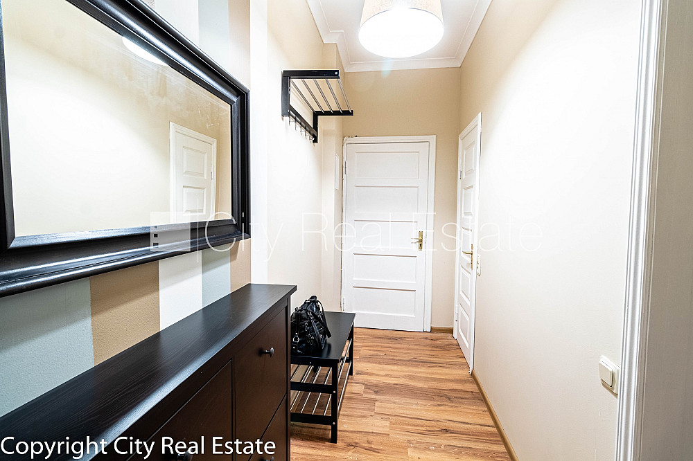 Pagalma māja, slēgts pagalms, ieeja no pagalma, logi vērsti uz pagalma pusi, guļamistabu skaits 2 gab., virtuve, centrālā apkure, pilnā apdare, restaurēti, atjaunoti koka logi, jauna santehnika, sanitārais mezgls apvienots, dušas kabīne, iebūvēta virtuves iekārta, iebūvēti sienas skapji, gulta , divguļamā gulta, galds, žurnālu galdiņš, krēsli, atpūtas krēsli, trīsvietīgais atpūtas krēsls, kumode, ledusskapis, gāzes plīts, tvaika nosūcējs, veļas mašīna, internets, kabeļtelevīzija, diennakts videonovērošana, kāpņu telpā koda atslēga, uz 1 gadu, ar iespēju pagarināt līgumu, līdz trīs personām, atbrīvots, bez bērniem, bez dzīvniekiem, slēdzot īres līgumu, Jums būs jāmaksā par pirmo īres mēnesi , kā arī jāiemaksā drošības depozīts, izvēloties šo īpašumu, komisijas maksa par starpniecības pakalpojumiem ir vienāda ar vienu pusi (50%) no šī īpašuma viena mēneša īres maksas, CITY REAL ESTATE ID - 424418