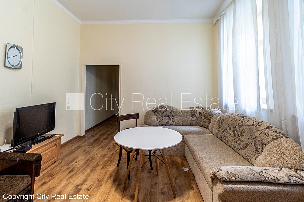 Šo dzīvokli izīrē pa diennaktīm (īstermiņa īre), īres cena sludinājumā norādīta par vienu diennakts īri. Pagalma ēka, renovēta māja, labiekārtots apzaļumots pagalms, slēgts pagalms, vieta automašīnai, ieeja no pagalma, ir lifts, logi vērsti uz pagalma pusi, guļamistabu skaits 2 gab., istabas izolētas 2 gab., viena istaba caurstaigājama, augstie griesti, centrālā apkure, lamināta parketa grīda, linoleja grīdas segums, flīžu grīdas segums, sanitārais mezgls atsevišķs, vanna, dīvāns, divguļamā gulta, galds, virtuves galds, datorgalds, atpūtas krēsli, virtuves krēsli, spogulis, ledusskapis, gāzes plīts, veļas mašīna, internets, kabeļtelevīzija, diennakts apsardze, kāpņu telpā koda atslēga, minimālais īres termiņš 3 diennaktis, stratēģiski izdevīga vieta, CITY REAL ESTATE ID - 424669