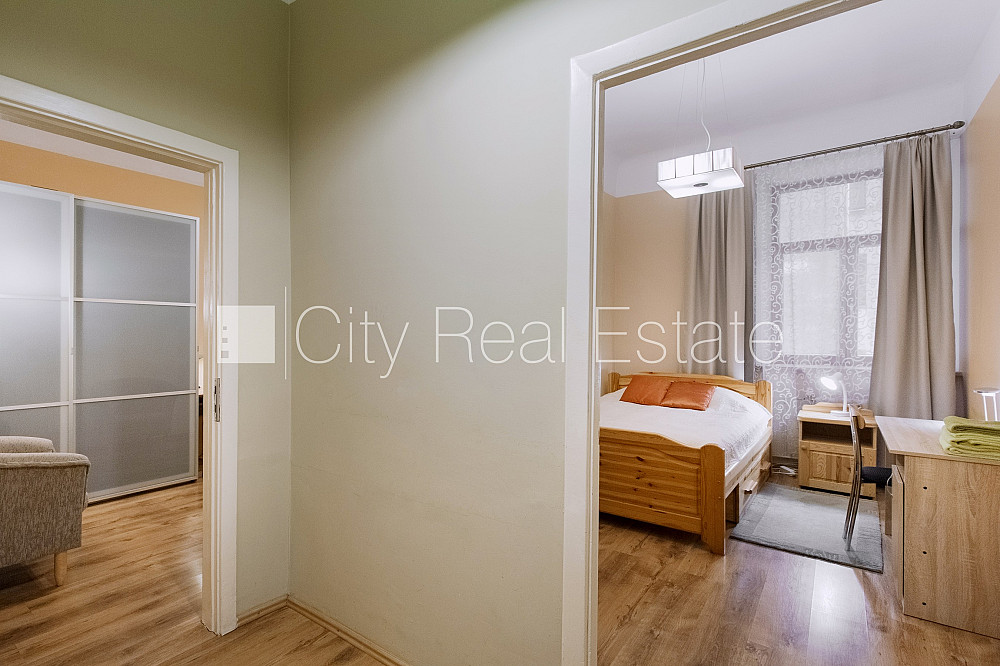 Šo dzīvokli izīrē pa diennaktīm (īstermiņa īre), īres cena sludinājumā norādīta par vienu diennakts īri. Pagalma māja, renovēta māja, labiekārtots apzaļumots pagalms, slēgts pagalms, ieeja no pagalma, ir lifts, kāpņu telpa pēc kosmētiskā remonta, logi vērsti mājas abās pusēs, guļamistabu skaits 2 gab., virtuve, augstie griesti, centrālā apkure, pilnā apdare, koka stikla pakešu logi, krāsotas sienas, jauna santehnika, lamināta parketa grīda, flīžu grīdas segums, sanitārais mezgls apvienots, vanna, iebūvēta virtuves iekārta, izvelkamais stūra dīvāns, divguļamā gulta, virtuves galds, krēsli, virtuves krēsli, drēbju skapis, kumode, ledusskapis, cepeškrāsns, gāzes plīts, tvaika nosūcējs, veļas mašīna, internets, kabeļtelevīzija, diennakts apsardze, kāpņu telpā koda atslēga, minimālais īres termiņš 3 diennaktis, atbrīvots, stratēģiski izdevīga vieta, CITY REAL ESTATE ID - 423956