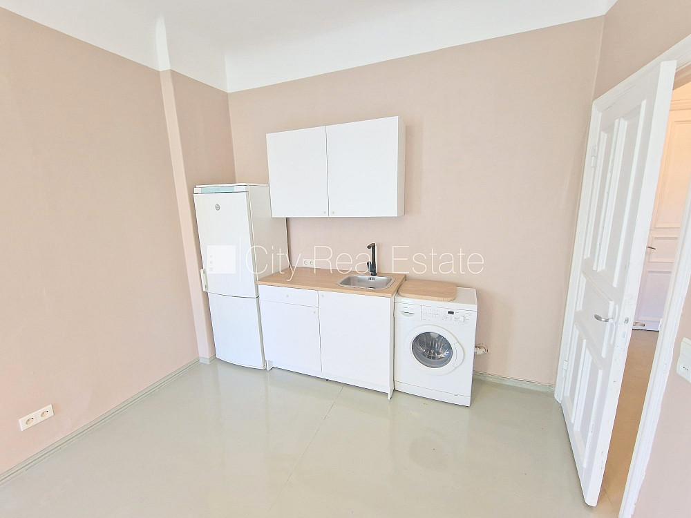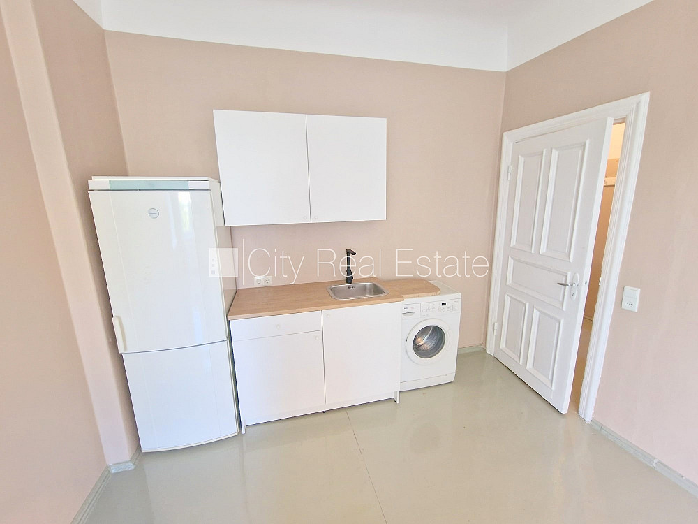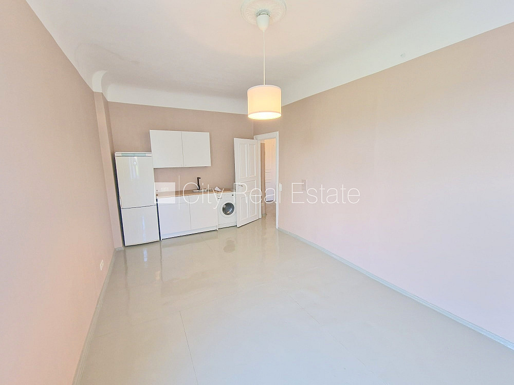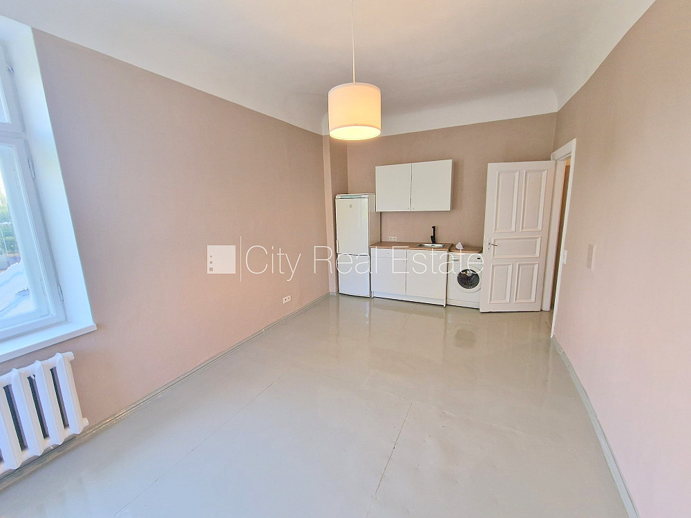 Fasādes māja, vieta automašīnai, ieeja no ielas un pagalma, logi vērsti uz pagalma pusi, plašs skats no loga, guļamistabu skaits 1 gab., viena istaba izolēta, studio tipa, virtuve apvienota ar istabu, augstie griesti, centrālā apkure, plastikāta stikla pakešu logi, krāsotas sienas, sanitārais mezgls apvienots, vanna, tualete, iebūvēta virtuves iekārta, ledusskapis, elektriskā plīts, veļas mašīna, slēgta kāpņu telpa, uz 1 gadu, uz 2 gadiem, ar iespēju pagarināt līgumu, atbrīvots, slēdzot īres līgumu, Jums būs jāmaksā par pirmo īres mēnesi , kā arī jāiemaksā drošības depozīts, izvēloties šo īpašumu, komisijas maksa par starpniecības pakalpojumiem ir vienāda ar vienu pusi (50%) no šī īpašuma viena mēneša īres maksas, CITY REAL ESTATE ID - 517716