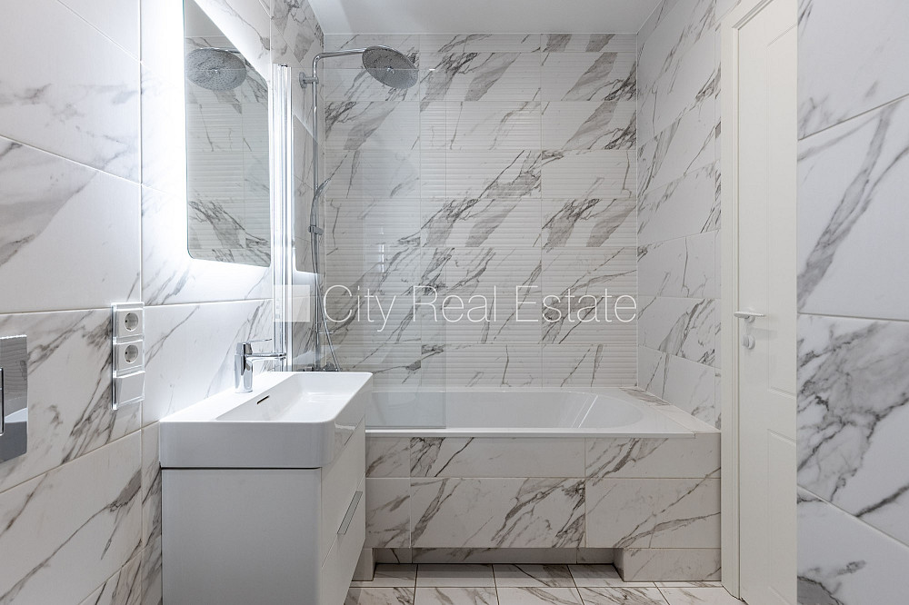 Fasādes māja, renovēta māja, labiekārtots apzaļumots pagalms, slēgts pagalms, iespēja nomāt autostāvvietu, ieeja no ielas un pagalma, pagalmā bērnu spēļu laukums, ir lifts, kāpņu telpa pēc kapitālā remonta, logi vērsti uz pagalma pusi, istabas izolētas 1 gab., studio tipa, virtuve apvienota ar viesistabu, augstie griesti, radiatori ar termoregulatoriem, centrālā apkure, apkures skaitītāji, individuāla apkures sistēmas uzskaite, pilnā apdare, apsildāma grīda koridorā, apsildāma grīda vannas istabā, plastikāta stikla pakešu logi, jauna santehnika, lamināta parketa grīda, flīžu grīdas segums, sanitārais mezgls apvienots, vanna, iebūvēta virtuves iekārta, iebūvēti sienas skapji, gaisa kondicionieris, ledusskapis, trauku mazgājamā mašīna, elektriskā plīts, cepeškrāsns, tvaika nosūcējs, mikroviļņu krāsns, diennakts videonovērošana, video domofons, kāpņu telpā koda atslēga, atbrīvots, projektā vēl pieejami dzīvokļi, stratēģiski izdevīga vieta, CITY REAL ESTATE ID - 516093