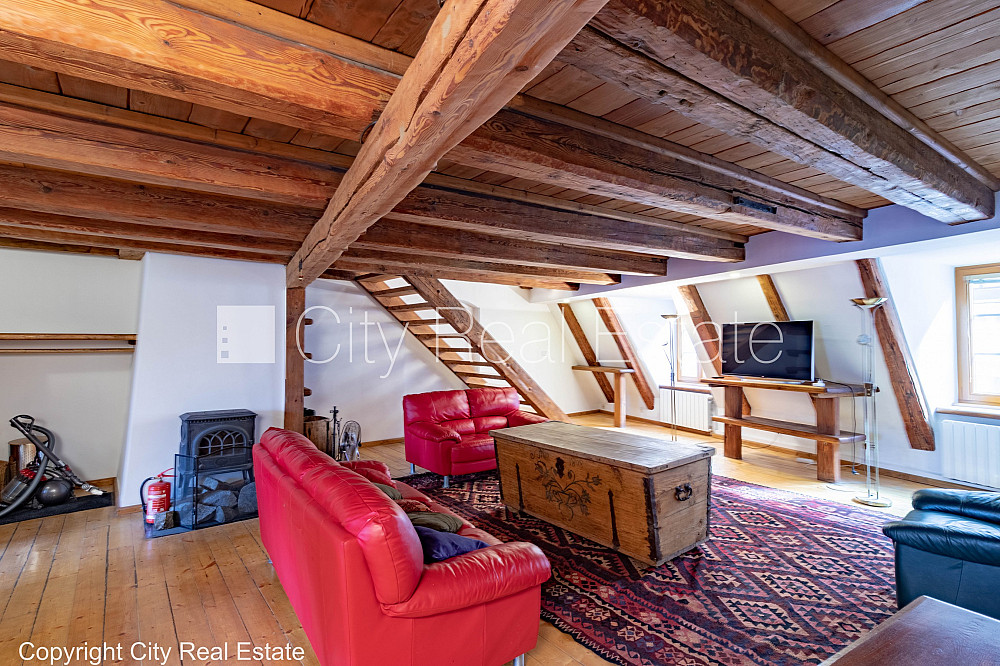 Fasādes māja, renovēta māja, mainīts Jumta segums, bruģēts piebraucamais ceļš, ieeja no ielas, kāpņu telpa pēc kapitālā remonta, logi vērsti mājas abās pusēs, plašs skats no loga, trīsstāvīgs, studio tipa, virtuve apvienota ar viesistabu, jauna ūdens cauruļu sistēma, mainīti radiatori, radiatori ar termoregulatoriem, centrālā apkure, divos līmeņos, pilnā apdare, koka stikla pakešu logi, jauna santehnika, ozola koka grīdas segums, jauna elektroinstalācija, mainīta kanalizācijas sistēma, sanitārais mezgls apvienots, vanna, antikvāras mēbeles, restaurētas mēbeles, dīvāns, divguļamā gulta, galds, krēsli, atpūtas krēsli, televizors, ledusskapis, saldētava, trauku mazgājamā mašīna, elektriskā plīts, cepeškrāsns, veļas mašīna, optiskais internets, signalizācija, kāpņu telpā koda atslēga, atbrīvots, stratēģiski izdevīga vieta, bez dzīvniekiem, slēdzot īres līgumu, Jums būs jāmaksā par pirmo īres mēnesi , kā arī jāiemaksā drošības depozīts viena mēneša īres maksas apmērā, komisijas maksa par starpniecības pakalpojumiem nav jāmaksā, CITY REAL ESTATE ID - 427158