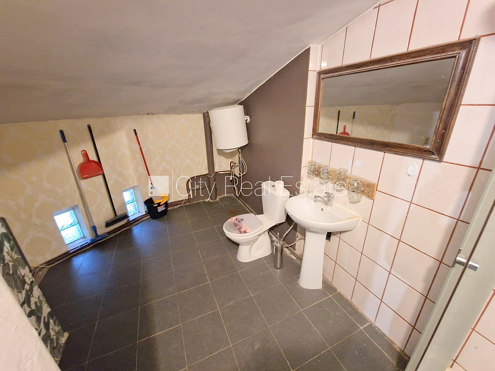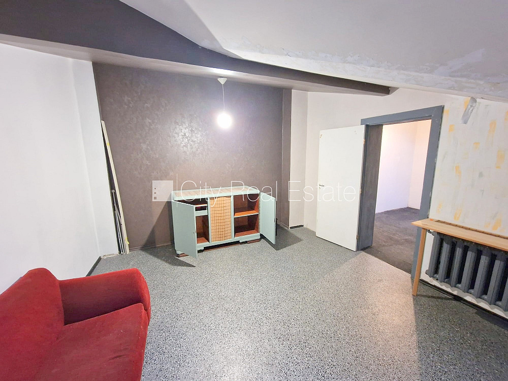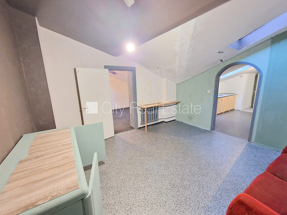 Fasādes māja, renovēta māja, iežogota teritorija, vieta automašīnai, ieeja no pagalma, mansards, kāpņu telpa pēc kosmētiskā remonta, logi vērsti uz pagalma pusi, viena istaba izolēta, viena istaba caurstaigājama, slīpie griesti, augstie griesti, gāzes apkure, centrālā apkure, boilers karstajam ūdenim, jumta logi, izlīmētas tapetes, krāsotas sienas, jauna santehnika, linoleja grīdas segums, sanitārais mezgls apvienots, dušas kabīne, tualete, dīvāns, elektriskā plīts, slēgta kāpņu telpa, izīrē ar visu bildēs redzamo aprīkojumu, atbrīvots, slēdzot īres līgumu, Jums būs jāmaksā par pirmo īres mēnesi , kā arī jāiemaksā drošības depozīts viena mēneša īres maksas apmērā, izvēloties šo īpašumu, komisijas maksa par starpniecības pakalpojumiem ir vienāda ar vienu pusi (50%) no šī īpašuma viena mēneša īres maksas, CITY REAL ESTATE ID - 426608