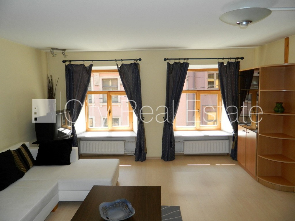 Fasādes māja, renovēta māja, ieeja no ielas, kāpņu telpa pēc kosmētiskā remonta, logi vērsti mājas abās pusēs, istabas izolētas 2 gab., viesistaba, viena telpa caurstaigājama, virtuve, kamīns, centrālā apkure, koka stikla pakešu logi, krāsotas sienas, lamināta parketa grīda, flīžu grīdas segums, sanitārais mezgls apvienots, vanna, iebūvēta virtuves iekārta, iebūvēti sienas skapji, dīvāns, divguļamā gulta, rakstāmgalds, virtuves galds, žurnālu galdiņš, vienvietīgais atpūtas krēsls, virtuves krēsli, skapis, trauku skapis, spogulis, televizors, ledusskapis, trauku mazgājamā mašīna, gāzes plīts, mikroviļņu krāsns, veļas mašīna, optiskais internets, slēgta kāpņu telpa, kāpņu telpā koda atslēga, trauki, minimālais īres termiņš, uz 1 gadu, atbrīvots, stratēģiski izdevīga vieta, bez dzīvniekiem, CITY REAL ESTATE ID - 424428