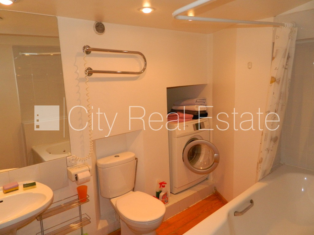 Fasādes māja, renovēta māja, ieeja no ielas, kāpņu telpa pēc kosmētiskā remonta, logi vērsti mājas abās pusēs, istabas izolētas 2 gab., viesistaba, viena telpa caurstaigājama, virtuve, kamīns, centrālā apkure, koka stikla pakešu logi, krāsotas sienas, lamināta parketa grīda, flīžu grīdas segums, sanitārais mezgls apvienots, vanna, iebūvēta virtuves iekārta, iebūvēti sienas skapji, dīvāns, divguļamā gulta, rakstāmgalds, virtuves galds, žurnālu galdiņš, vienvietīgais atpūtas krēsls, virtuves krēsli, skapis, trauku skapis, spogulis, televizors, ledusskapis, trauku mazgājamā mašīna, gāzes plīts, mikroviļņu krāsns, veļas mašīna, optiskais internets, slēgta kāpņu telpa, kāpņu telpā koda atslēga, trauki, minimālais īres termiņš, uz 1 gadu, atbrīvots, stratēģiski izdevīga vieta, bez dzīvniekiem, CITY REAL ESTATE ID - 424428