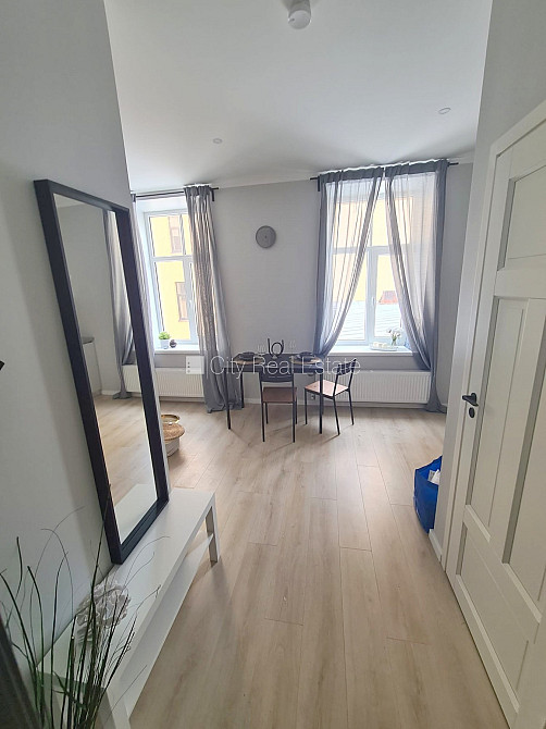 Fasādes māja, renovēta māja, ieeja no ielas, kāpņu telpa pēc kapitālā remonta, logi vērsti uz pagalma pusi, studio tipa, virtuve apvienota ar istabu, centrālā apkure, pilnā apdare, plastikāta stikla pakešu logi, krāsotas sienas, jauna santehnika, lamināta parketa grīda, flīžu grīdas segums, sanitārais mezgls apvienots, dušas kabīne, tualete, iebūvēta virtuves iekārta, izvelkamais stūra dīvāns, virtuves galds, krēsli, skapis, ledusskapis, elektriskā plīts, cepeškrāsns, tvaika nosūcējs, veļas mašīna, slēgta kāpņu telpa, izīrē ar visu bildēs redzamo aprīkojumu, uz 1 gadu, ar iespēju pagarināt līgumu, atbrīvots, slēdzot īres līgumu, Jums būs jāmaksā par pirmo īres mēnesi , kā arī jāiemaksā drošības depozīts viena mēneša īres maksas apmērā, izvēloties šo īpašumu, komisijas maksa par starpniecības pakalpojumiem ir vienāda ar vienu pusi (50%) no šī īpašuma viena mēneša īres maksas, CITY REAL ESTATE ID - 513250