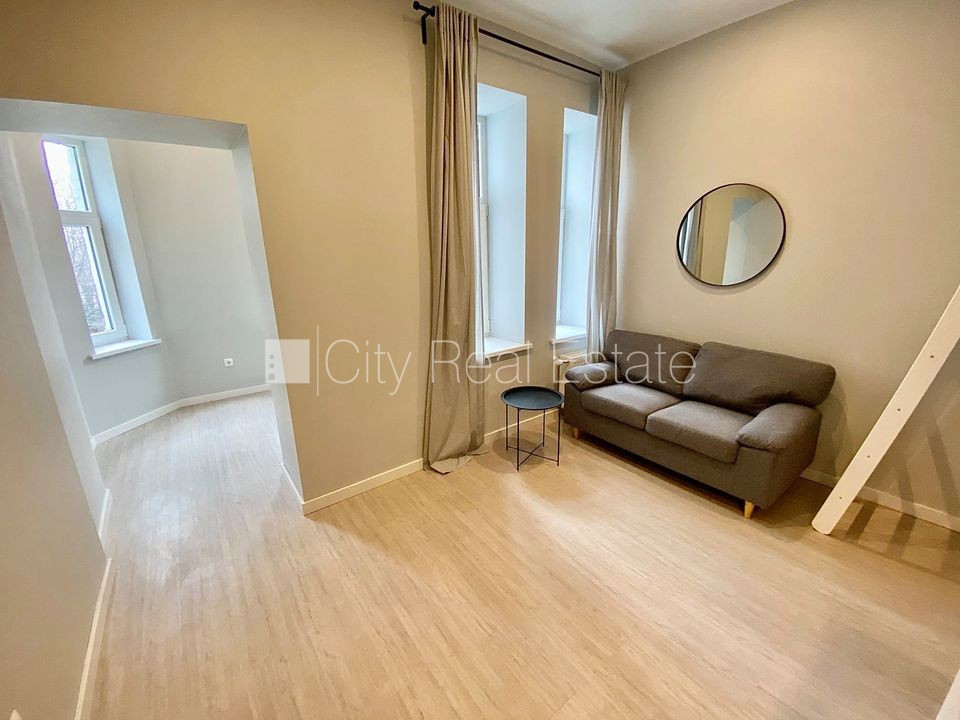 Fasādes māja, renovēta māja, ieeja no ielas, kāpņu telpa pēc kapitālā remonta, logi vērsti uz pagalma pusi, divstāvīgs, augstie griesti, centrālā apkure, pilnā apdare, plastikāta stikla pakešu logi, krāsotas sienas, jauna santehnika, lamināta parketa grīda, flīžu grīdas segums, sanitārais mezgls apvienots, dušas kabīne, tualete, iebūvēta virtuves iekārta, dīvāns, gulta , skapis, ledusskapis, elektriskā plīts, cepeškrāsns, tvaika nosūcējs, veļas mašīna, slēgta kāpņu telpa, izīrē ar visu bildēs redzamo aprīkojumu, atbrīvots, slēdzot īres līgumu, Jums būs jāmaksā par pirmo īres mēnesi , kā arī jāiemaksā drošības depozīts viena mēneša īres maksas apmērā, izvēloties šo īpašumu, komisijas maksa par starpniecības pakalpojumiem ir vienāda ar vienu pusi (50%) no šī īpašuma viena mēneša īres maksas, CITY REAL ESTATE ID - 509734