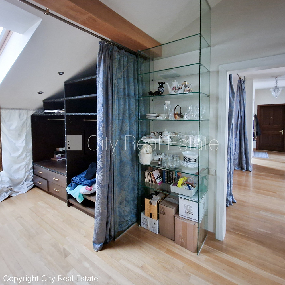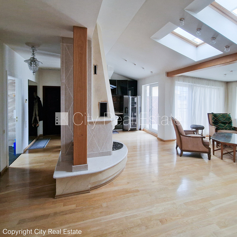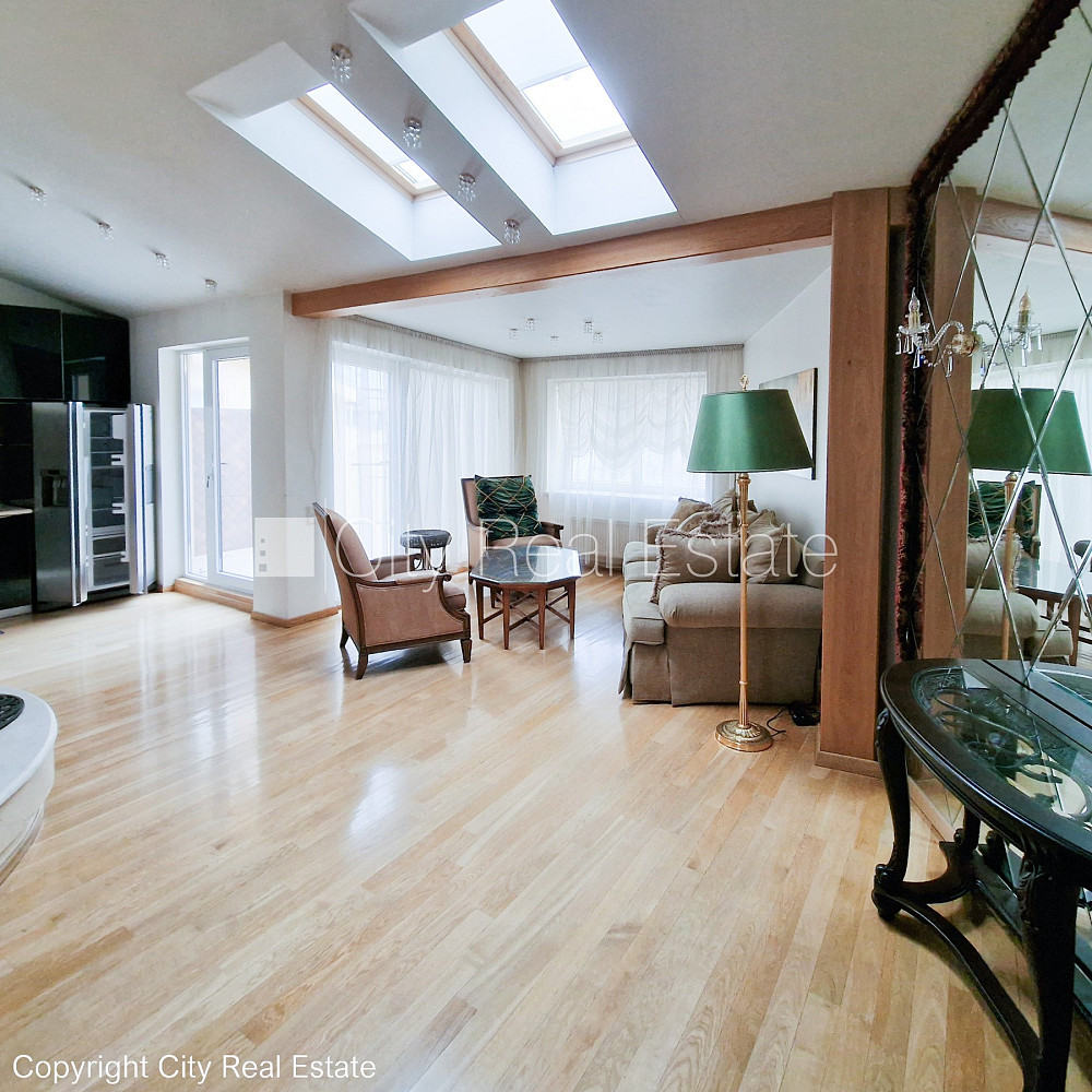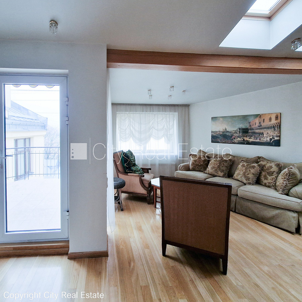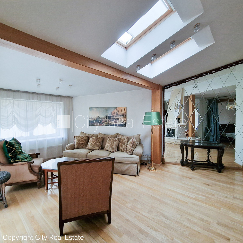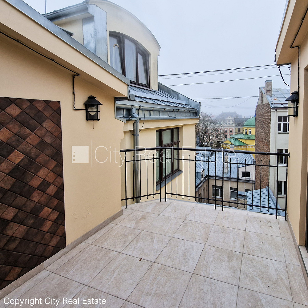 Fasādes māja, renovēta māja, ieeja no ielas, ir lifts, kāpņu telpa pēc kapitālā remonta, terase, guļamistabu skaits 1 gab., istabas izolētas 1 gab., studio tipa, virtuve apvienota ar viesistabu, garderobe, pilnā apdare, plastikāta stikla pakešu logi, jumta logi, metāla durvis, sanitārais mezgls apvienots, džakūzī vanna, bidē, iebūvēta virtuves iekārta, iebūvēti sienas skapji, ledusskapis, elektriskā plīts, internets, diennakts apsardze, slēgta kāpņu telpa, kāpņu telpā koda atslēga, izīrē ar visu bildēs redzamo aprīkojumu, atbrīvots, stratēģiski izdevīga vieta, CITY REAL ESTATE ID - 514454