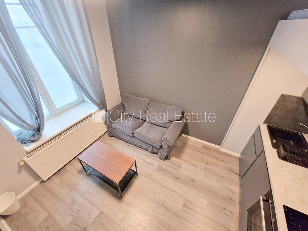 Fasādes māja, renovēta māja, ieeja no ielas, logi vērsti uz ielas pusi, divstāvīgs, studio tipa, virtuve apvienota ar istabu, ir iespēja īrēt mazāku platību, centrālā apkure, lielie skatlogi, plastikāta stikla pakešu logi, krāsotas sienas, jauna santehnika, lamināta parketa grīda, sanitārais mezgls apvienots, dušas kabīne, tualete, iebūvēta virtuves iekārta, iebūvēti sienas skapji, dīvāns, virtuves galds, krēsli, ledusskapis, elektriskā plīts, cepeškrāsns, tvaika nosūcējs, veļas mašīna, slēgta kāpņu telpa, izīrē ar visu bildēs redzamo aprīkojumu, uz 1 gadu, uz 2 gadiem, ar iespēju pagarināt līgumu, atbrīvots, slēdzot īres līgumu, Jums būs jāmaksā par pirmo īres mēnesi , kā arī jāiemaksā drošības depozīts, izvēloties šo īpašumu, komisijas maksa par starpniecības pakalpojumiem ir vienāda ar vienu pusi (50%) no šī īpašuma viena mēneša īres maksas, CITY REAL ESTATE ID - 517784