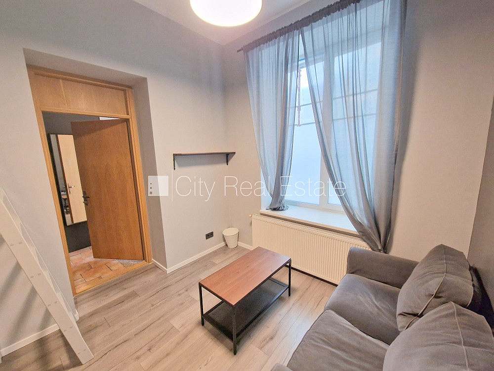 Fasādes māja, renovēta māja, ieeja no ielas, logi vērsti uz ielas pusi, divstāvīgs, studio tipa, virtuve apvienota ar istabu, ir iespēja īrēt mazāku platību, centrālā apkure, lielie skatlogi, plastikāta stikla pakešu logi, krāsotas sienas, jauna santehnika, lamināta parketa grīda, sanitārais mezgls apvienots, dušas kabīne, tualete, iebūvēta virtuves iekārta, iebūvēti sienas skapji, dīvāns, virtuves galds, krēsli, ledusskapis, elektriskā plīts, cepeškrāsns, tvaika nosūcējs, veļas mašīna, slēgta kāpņu telpa, izīrē ar visu bildēs redzamo aprīkojumu, uz 1 gadu, uz 2 gadiem, ar iespēju pagarināt līgumu, atbrīvots, slēdzot īres līgumu, Jums būs jāmaksā par pirmo īres mēnesi , kā arī jāiemaksā drošības depozīts, izvēloties šo īpašumu, komisijas maksa par starpniecības pakalpojumiem ir vienāda ar vienu pusi (50%) no šī īpašuma viena mēneša īres maksas, CITY REAL ESTATE ID - 517784