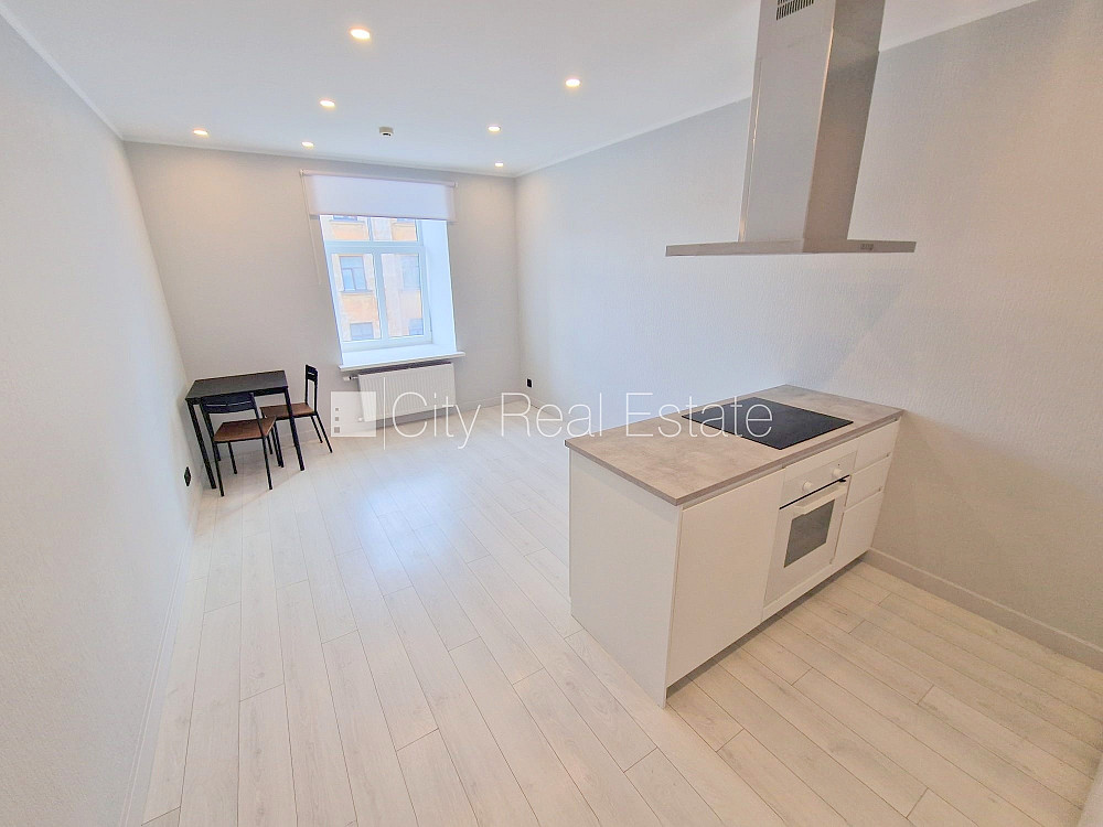 Fasādes māja, renovēta māja, slēgts pagalms, ieeja no ielas un pagalma, kāpņu telpa pēc kosmētiskā remonta, logi vērsti mājas abās pusēs, guļamistabu skaits 1 gab., studio tipa, virtuve apvienota ar istabu, augstie griesti, centrālā apkure, plastikāta stikla pakešu logi, krāsotas sienas, jauna santehnika, lamināta parketa grīda, sanitārais mezgls apvienots, dušas kabīne, tualete, iebūvēta virtuves iekārta, ledusskapis, elektriskā plīts, cepeškrāsns, tvaika nosūcējs, veļas mašīna, kāpņu telpā koda atslēga, izīrē ar visu bildēs redzamo aprīkojumu, uz 1 gadu, uz 2 gadiem, ar iespēju pagarināt līgumu, atbrīvots, slēdzot īres līgumu, Jums būs jāmaksā par pirmo īres mēnesi , kā arī jāiemaksā drošības depozīts viena mēneša īres maksas apmērā, izvēloties šo īpašumu, komisijas maksa par starpniecības pakalpojumiem ir vienāda ar vienu pusi (50%) no šī īpašuma viena mēneša īres maksas, CITY REAL ESTATE ID - 516584