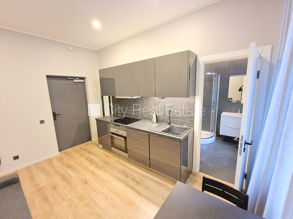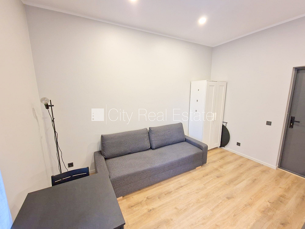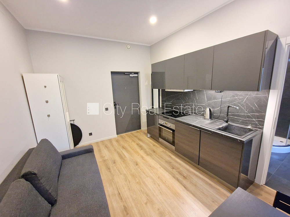 Fasādes māja, renovēta māja, slēgts pagalms, ieeja no ielas un pagalma, ir lifts, kāpņu telpa pēc kapitālā remonta, logi vērsti uz pagalma pusi, studio tipa, virtuve apvienota ar istabu, augstie griesti, centrālā apkure, pilnā apdare, koka stikla pakešu logi, krāsotas sienas, jauna santehnika, lamināta parketa grīda, flīžu grīdas segums, sanitārais mezgls apvienots, dušas kabīne, tualete, iebūvēta virtuves iekārta, dīvāns, virtuves galds, krēsli, skapis, ledusskapis, elektriskā plīts, cepeškrāsns, tvaika nosūcējs, veļas mašīna, slēgta kāpņu telpa, izīrē ar visu bildēs redzamo aprīkojumu, uz deviņiem mēnešiem, uz 1 gadu, ar iespēju pagarināt līgumu, atbrīvo augustā, slēdzot īres līgumu, Jums būs jāmaksā par pirmo īres mēnesi , kā arī jāiemaksā drošības depozīts viena mēneša īres maksas apmērā, izvēloties šo īpašumu, komisijas maksa par starpniecības pakalpojumiem ir vienāda ar vienu pusi (50%) no šī īpašuma viena mēneša īres maksas, CITY REAL ESTATE ID - 513045