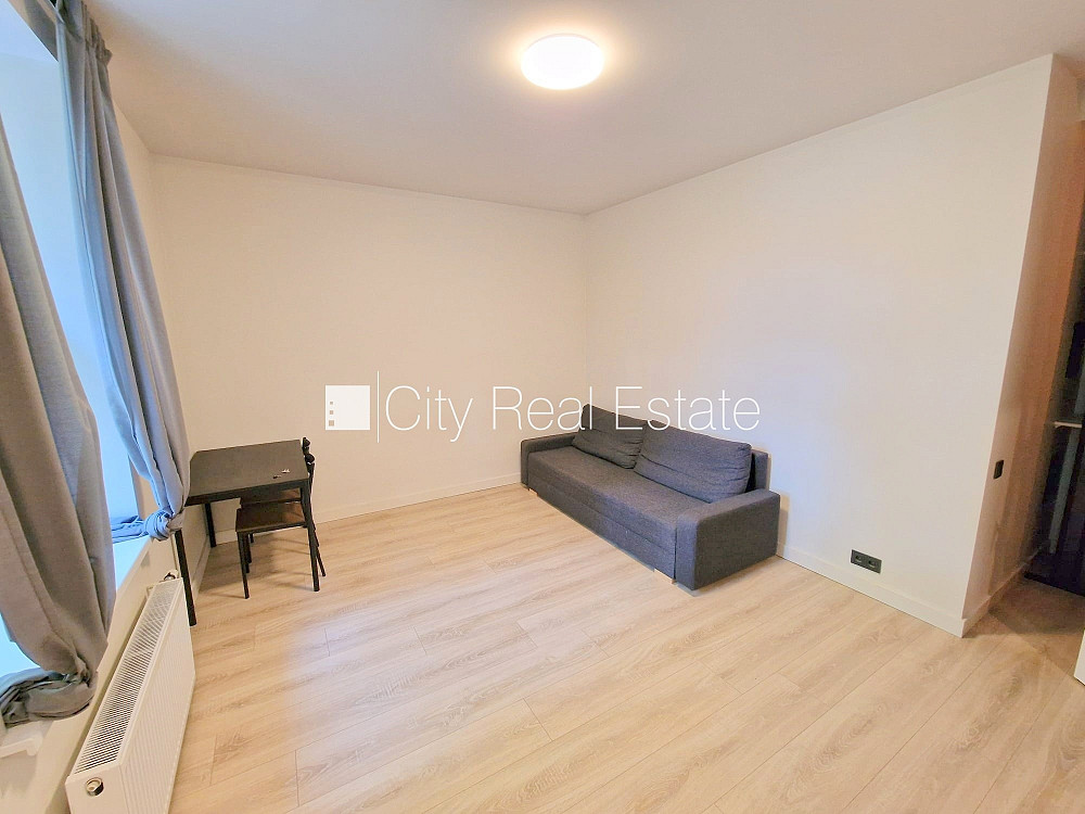 Fasādes māja, renovēta māja, slēgts pagalms, ieeja no ielas un pagalma, ir lifts, kāpņu telpa pēc kapitālā remonta, logi vērsti uz pagalma pusi, studio tipa, virtuve apvienota ar istabu, augstie griesti, centrālā apkure, pilnā apdare, plastikāta stikla pakešu logi, krāsotas sienas, jauna santehnika, lamināta parketa grīda, flīžu grīdas segums, sanitārais mezgls apvienots, dušas kabīne, tualete, iebūvēta virtuves iekārta, iebūvēti sienas skapji, izvelkamais stūra dīvāns, virtuves galds, krēsli, ledusskapis, elektriskā plīts, cepeškrāsns, tvaika nosūcējs, veļas mašīna, diennakts videonovērošana, slēgta kāpņu telpa, izīrē ar visu bildēs redzamo aprīkojumu, uz 1 gadu, uz 2 gadiem, ar iespēju pagarināt līgumu, atbrīvots, slēdzot īres līgumu, Jums būs jāmaksā par pirmo īres mēnesi , kā arī jāiemaksā drošības depozīts viena mēneša īres maksas apmērā, izvēloties šo īpašumu, komisijas maksa par starpniecības pakalpojumiem ir vienāda ar vienu pusi (50%) no šī īpašuma viena mēneša īres maksas, CITY REAL ESTATE ID - 516723