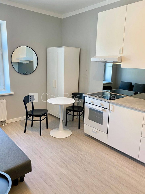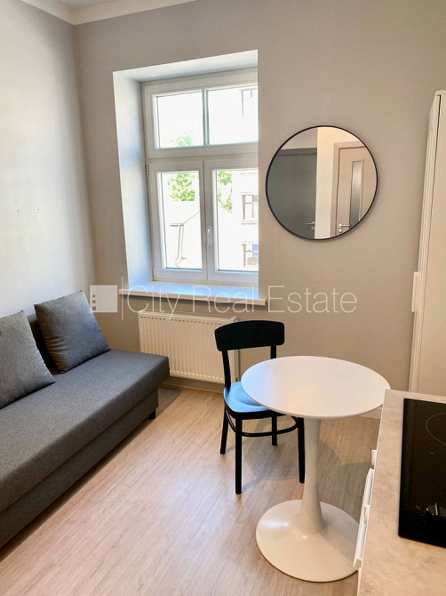 Fasādes māja, renovēta māja, slēgts pagalms, ieeja no ielas, kāpņu telpa pēc kapitālā remonta, logi vērsti uz pagalma pusi, studio tipa, virtuve apvienota ar istabu, augstie griesti, centrālā apkure, apkures skaitītāji, individuāla apkures sistēmas uzskaite, pilnā apdare, plastikāta stikla pakešu logi, krāsotas sienas, lamināta parketa grīda, flīžu grīdas segums, sanitārais mezgls apvienots, dušas kabīne, tualete, iebūvēta virtuves iekārta, dīvāns, skapis, ledusskapis, elektriskā plīts, cepeškrāsns, tvaika nosūcējs, veļas mašīna, slēgta kāpņu telpa, izīrē ar visu bildēs redzamo aprīkojumu, atbrīvots, slēdzot īres līgumu, Jums būs jāmaksā par pirmo īres mēnesi , kā arī jāiemaksā drošības depozīts viena mēneša īres maksas apmērā, izvēloties šo īpašumu, komisijas maksa par starpniecības pakalpojumiem ir vienāda ar vienu pusi (50%) no šī īpašuma viena mēneša īres maksas, CITY REAL ESTATE ID - 508955