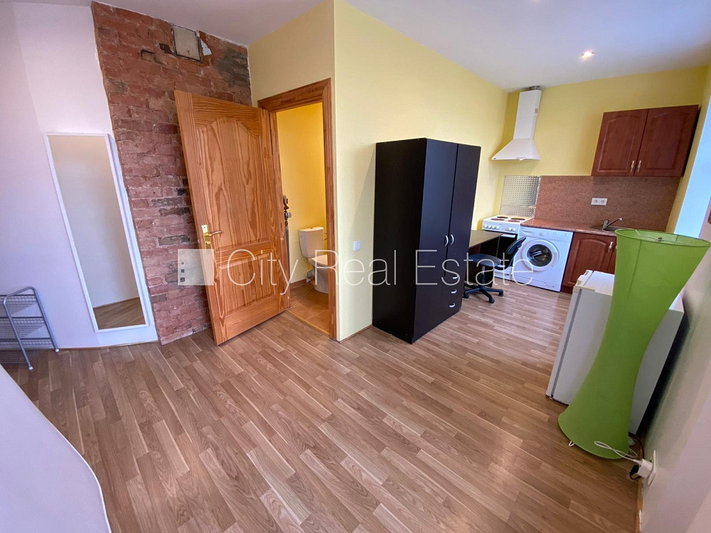 Fasādes māja, renovēta māja, slēgts pagalms, ieeja no ielas, kāpņu telpa pēc kosmētiskā remonta, logi vērsti uz pagalma pusi, studio tipa, virtuve apvienota ar istabu, augstie griesti, centrālā apkure, boilers karstajam ūdenim, pilnā apdare, plastikāta stikla pakešu logi, krāsotas sienas, jauna santehnika, lamināta parketa grīda, flīžu grīdas segums, sanitārais mezgls apvienots, dušas kabīne, tualete, iebūvēta virtuves iekārta, skapis, ledusskapis, elektriskā plīts, cepeškrāsns, tvaika nosūcējs, veļas mašīna, slēgta kāpņu telpa, izīrē ar visu bildēs redzamo aprīkojumu, uz 1 gadu, uz 2 gadiem, ar iespēju pagarināt līgumu, atbrīvots, slēdzot īres līgumu, Jums būs jāmaksā par pirmo īres mēnesi , kā arī jāiemaksā drošības depozīts viena mēneša īres maksas apmērā, izvēloties šo īpašumu, komisijas maksa par starpniecības pakalpojumiem ir vienāda ar vienu pusi (50%) no šī īpašuma viena mēneša īres maksas, CITY REAL ESTATE ID - 426644