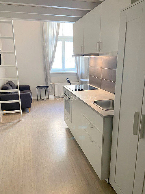 Fasādes māja, renovēta māja, slēgts pagalms, ieeja no ielas, kāpņu telpa pēc kapitālā remonta, logi vērsti uz ielas pusi, divstāvīgs, studio tipa, virtuve apvienota ar istabu, augstie griesti, centrālā apkure, pilnā apdare, plastikāta stikla pakešu logi, krāsotas sienas, lamināta parketa grīda, flīžu grīdas segums, sanitārais mezgls apvienots, dušas kabīne, tualete, iebūvēta virtuves iekārta, dīvāns, virtuves galds, krēsli, skapis, ledusskapis, elektriskā plīts, cepeškrāsns, tvaika nosūcējs, veļas mašīna, slēgta kāpņu telpa, izīrē ar visu bildēs redzamo aprīkojumu, atbrīvots, slēdzot īres līgumu, Jums būs jāmaksā par pirmo īres mēnesi , kā arī jāiemaksā drošības depozīts viena mēneša īres maksas apmērā, izvēloties šo īpašumu, komisijas maksa par starpniecības pakalpojumiem ir vienāda ar vienu pusi (50%) no šī īpašuma viena mēneša īres maksas, CITY REAL ESTATE ID - 507751