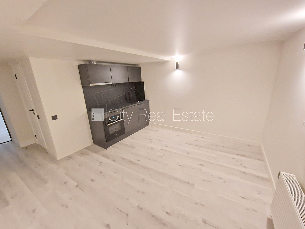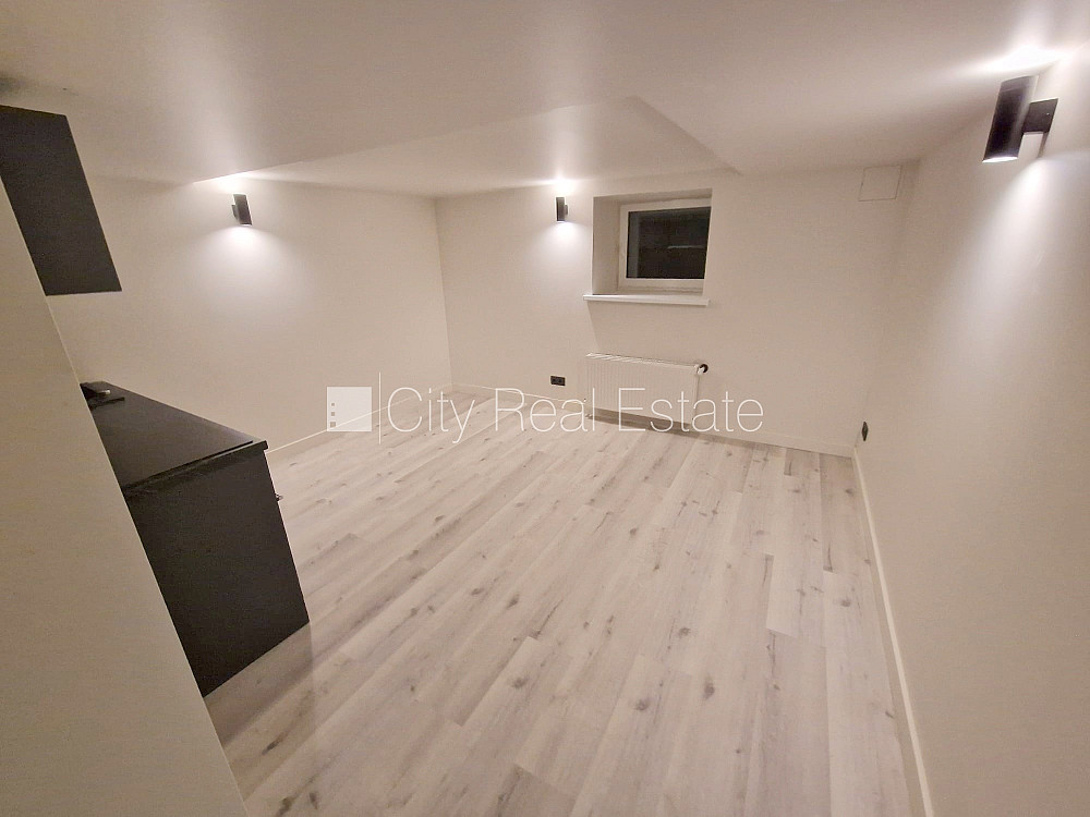 Fasādes māja, renovēta māja, slēgts pagalms, ieeja no ielas, puspagrabs, kāpņu telpa pēc kapitālā remonta, logi vērsti uz ielas pusi, studio tipa, virtuve apvienota ar istabu, centrālā apkure, pilnā apdare, plastikāta stikla pakešu logi, krāsotas sienas, jauna santehnika, lamināta parketa grīda, flīžu grīdas segums, sanitārais mezgls apvienots, dušas kabīne, tualete, iebūvēta virtuves iekārta, izvelkamais stūra dīvāns, virtuves galds, krēsli, skapis, ledusskapis, elektriskā plīts, cepeškrāsns, tvaika nosūcējs, veļas mašīna, slēgta kāpņu telpa, atbrīvots, slēdzot īres līgumu, Jums būs jāmaksā par pirmo īres mēnesi , kā arī jāiemaksā drošības depozīts viena mēneša īres maksas apmērā, izvēloties šo īpašumu, komisijas maksa par starpniecības pakalpojumiem ir vienāda ar vienu pusi (50%) no šī īpašuma viena mēneša īres maksas, CITY REAL ESTATE ID - 515937