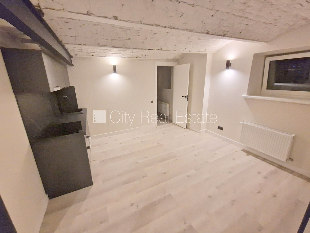 Fasādes māja, renovēta māja, slēgts pagalms, ieeja no ielas, puspagrabs, kāpņu telpa pēc kapitālā remonta, logi vērsti uz ielas pusi, viena istaba izolēta, studio tipa, virtuve apvienota ar istabu, centrālā apkure, pilnā apdare, plastikāta stikla pakešu logi, krāsotas sienas, jauna santehnika, lamināta parketa grīda, flīžu grīdas segums, sanitārais mezgls apvienots, dušas kabīne, tualete, iebūvēta virtuves iekārta, izvelkamais stūra dīvāns, gulta , virtuves galds, krēsli, skapis, ledusskapis, elektriskā plīts, cepeškrāsns, tvaika nosūcējs, veļas mašīna, slēgta kāpņu telpa, atbrīvots, slēdzot īres līgumu, Jums būs jāmaksā par pirmo īres mēnesi , kā arī jāiemaksā drošības depozīts viena mēneša īres maksas apmērā, izvēloties šo īpašumu, komisijas maksa par starpniecības pakalpojumiem ir vienāda ar vienu pusi (50%) no šī īpašuma viena mēneša īres maksas, CITY REAL ESTATE ID - 515938