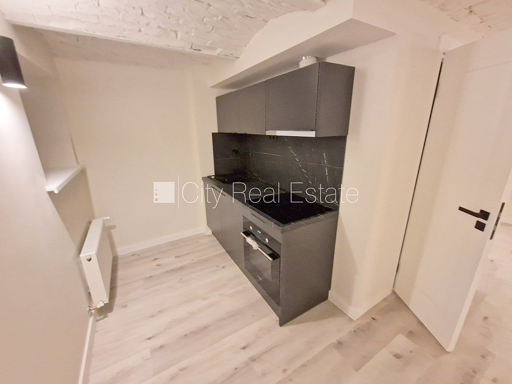 Fasādes māja, renovēta māja, slēgts pagalms, ieeja no ielas, puspagrabs, kāpņu telpa pēc kapitālā remonta, logi vērsti uz pagalma pusi, studio tipa, virtuve apvienota ar istabu, centrālā apkure, pilnā apdare, plastikāta stikla pakešu logi, krāsotas sienas, jauna santehnika, lamināta parketa grīda, sanitārais mezgls apvienots, dušas kabīne, tualete, iebūvēta virtuves iekārta, izvelkamais stūra dīvāns, virtuves galds, krēsli, skapis, ledusskapis, elektriskā plīts, cepeškrāsns, tvaika nosūcējs, veļas mašīna, diennakts videonovērošana, slēgta kāpņu telpa, atbrīvots, foto veikts remonta laikā, slēdzot īres līgumu, Jums būs jāmaksā par pirmo īres mēnesi , kā arī jāiemaksā drošības depozīts viena mēneša īres maksas apmērā, izvēloties šo īpašumu, komisijas maksa par starpniecības pakalpojumiem ir vienāda ar vienu pusi (50%) no šī īpašuma viena mēneša īres maksas, CITY REAL ESTATE ID - 515944