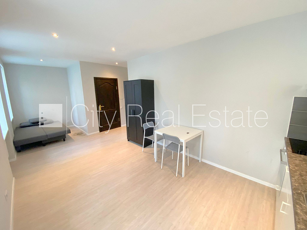 Fasādes māja, renovēta māja, slēgts pagalms, ieeja no pagalma, kāpņu telpa pēc kosmētiskā remonta, logi vērsti uz pagalma pusi, studio tipa, virtuve apvienota ar istabu, augstie griesti, centrālā apkure, pilnā apdare, plastikāta stikla pakešu logi, krāsotas sienas, jauna santehnika, lamināta parketa grīda, flīžu grīdas segums, sanitārais mezgls apvienots, dušas kabīne, tualete, iebūvēta virtuves iekārta, ledusskapis, elektriskā plīts, cepeškrāsns, tvaika nosūcējs, veļas mašīna, slēgta kāpņu telpa, atbrīvots, slēdzot īres līgumu, Jums būs jāmaksā par pirmo īres mēnesi , kā arī jāiemaksā drošības depozīts viena mēneša īres maksas apmērā, izvēloties šo īpašumu, komisijas maksa par starpniecības pakalpojumiem ir vienāda ar vienu pusi (50%) no šī īpašuma viena mēneša īres maksas, CITY REAL ESTATE ID - 435645