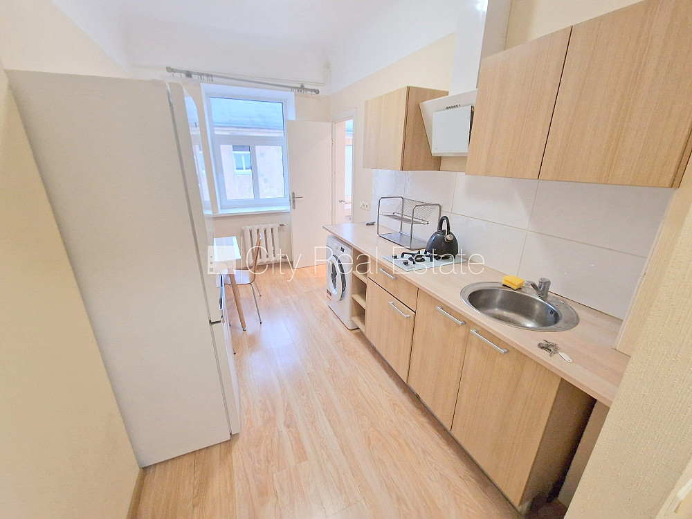 Fasādes māja, ieeja no ielas, logi vērsti mājas abās pusēs, viena istaba izolēta, viesistaba 18.6 m2, viena istaba caurstaigājama, virtuve 6.4 m2, halle 6.4 m2, griestu augstums 3.65 m, augstie griesti, mainīti radiatori, plastikāta stikla pakešu logi, metāla durvis, izlīdzinātas sienas, krāsotas sienas, jauna santehnika, parketa grīda, flīžu grīdas segums, sanitārais mezgls apvienots, vanna, cepeškrāsns, gāzes plīts, atbrīvo pēc nepieciešamības, reģistrēts zemesgrāmatā, stratēģiski izdevīga vieta, iznomāts, CITY REAL ESTATE ID - 423933