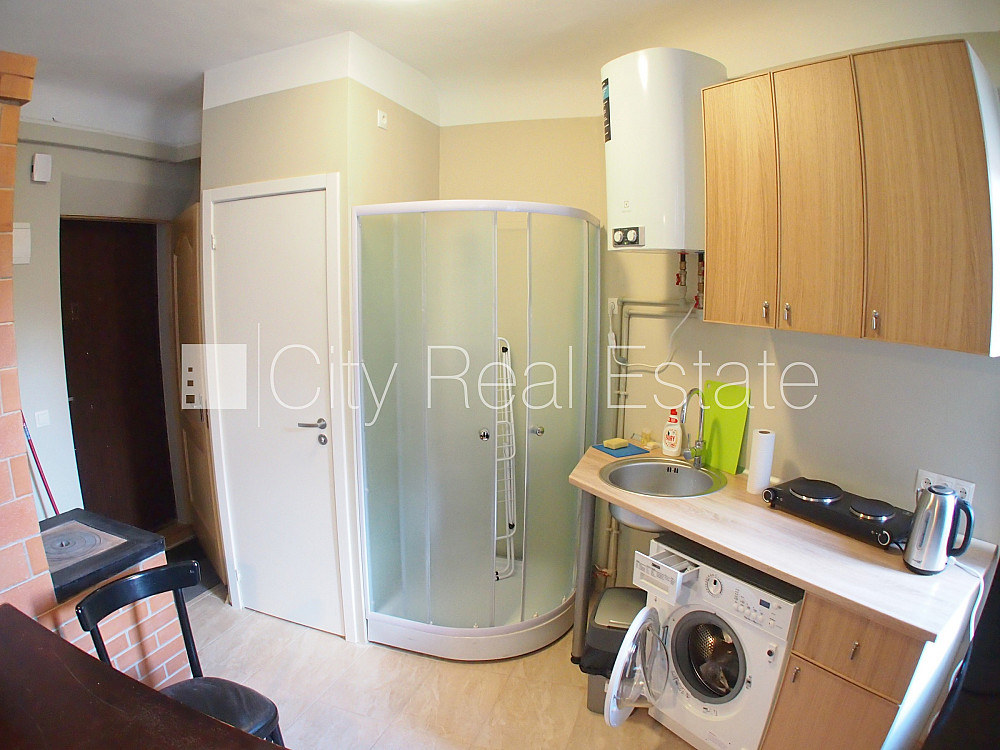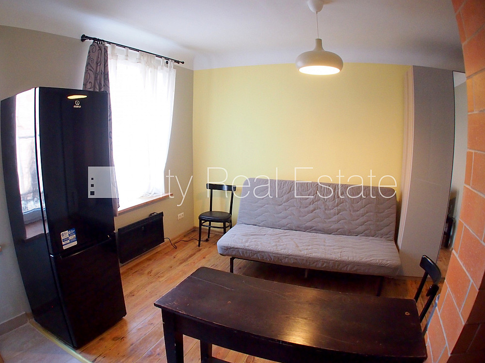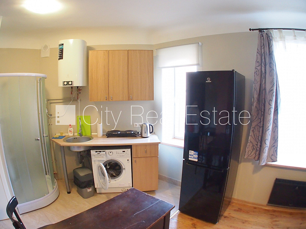 Fasādes māja, ieeja no ielas, logi vērsti uz pagalma pusi, studio tipa, virtuve apvienota ar istabu, augstie griesti, saglabāta krāsns, malkas apkure, elektriskā apkure, boilers karstajam ūdenim, pilnā apdare, plastikāta stikla pakešu logi, metāla durvis, izlīmētas tapetes, jauna santehnika, lamināta parketa grīda, flīžu grīdas segums, dušas kabīne, tualete, iebūvēta virtuves iekārta, dīvāns, galds, skapis, ledusskapis, elektriskā plīts, veļas mašīna, izīrē ar visu bildēs redzamo aprīkojumu, uz 1 gadu, ar iespēju pagarināt līgumu, līdz divām personām, atbrīvots, slēdzot īres līgumu, Jums būs jāmaksā par pirmo īres mēnesi , kā arī jāiemaksā drošības depozīts viena mēneša īres maksas apmērā, izvēloties šo īpašumu, komisijas maksa par starpniecības pakalpojumiem ir vienāda ar vienu pusi (50%) no šī īpašuma viena mēneša īres maksas, CITY REAL ESTATE ID - 426557