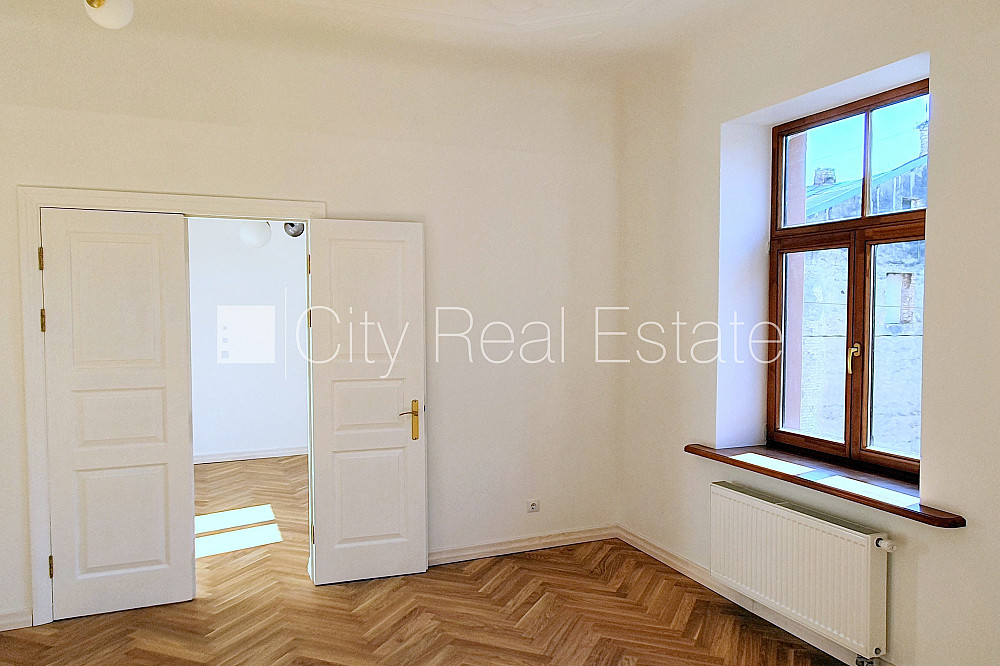 Fasādes māja, slēgts pagalms, vieta automašīnai, logi vērsti mājas abās pusēs, plašs skats no loga, guļamistabu skaits 3 gab., viesistaba, virtuve, halle, palīgtelpa, augstie griesti, centrālā apkure, koka stikla pakešu logi, jauna santehnika, ozola koka grīdas segums, parketa grīda, divi sanitārie mezgli, vanna, dušas kabīne, iebūvēta virtuves iekārta, iebūvēti sienas skapji, divguļamā gulta, ledusskapis, trauku mazgājamā mašīna, elektriskā plīts, cepeškrāsns, veļas mašīna, optiskais internets, signalizācija, slēgta kāpņu telpa, atbrīvots, stratēģiski izdevīga vieta, CITY REAL ESTATE ID - 512356